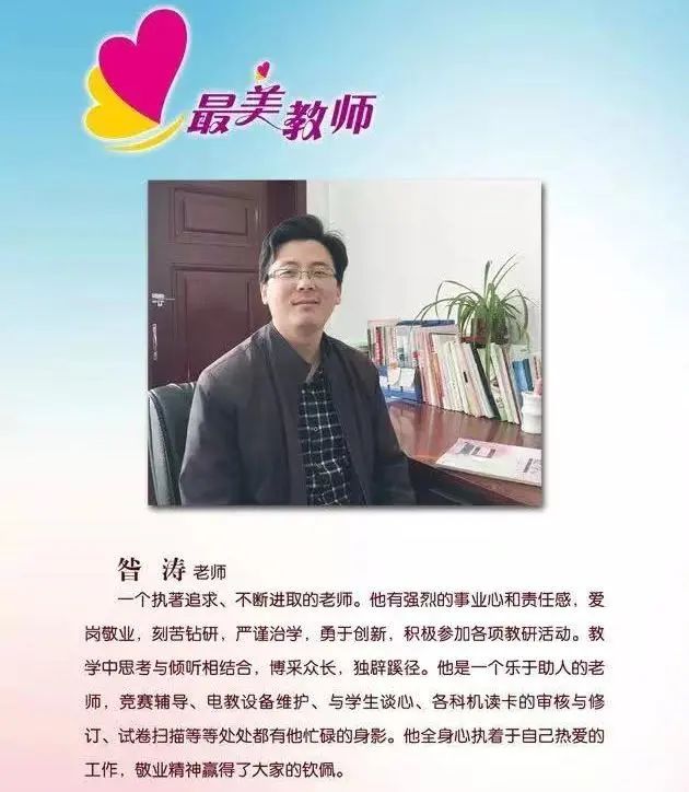 昝涛,2008年毕业进入沧州一中工作,中学一级教师,中国数学奥林匹克教练员,自2013年起至今连续担任班主任工作。