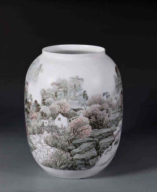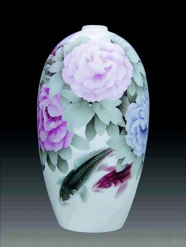 擅长秞下五彩山水、人物、花鸟,数十年如一日,率先研制出了釉下鲤鱼的画法,填补了用釉下五彩来表现鲤鱼的空白。