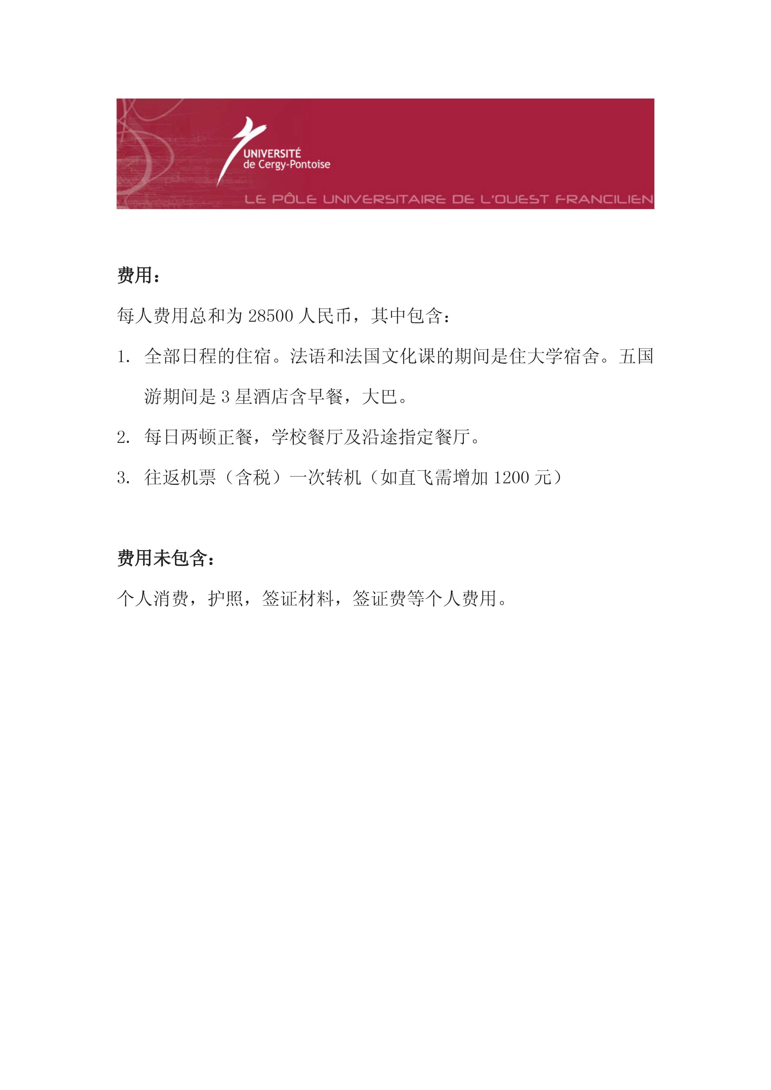 学生无须法语预科,而是直接进入大一专业学习,就读于塞尔齐大学理工学院。