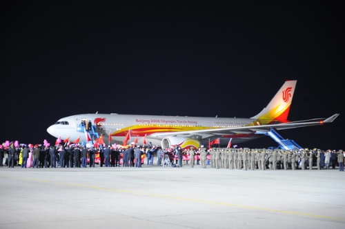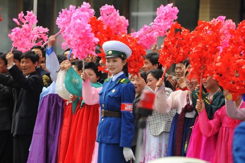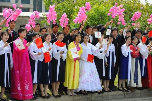 圣火号专机凌晨抵达平壤,一千多民众在寒风中迎接