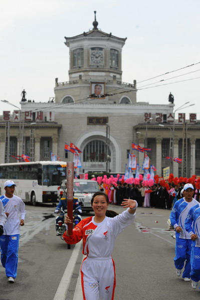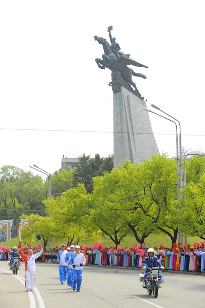 我不知道该如何形容奥运火炬在平壤的传递。它肯定是奥运史上的第一次,因为这是第一次奥运火炬抵达平壤。而对于我们在风风雨雨中已经走完了全球18个城市的运行团队所有人来说,它带给我们感觉是安全、快乐、和谐、盛大、隆重、顺利、圆满、热情、单纯、感动......