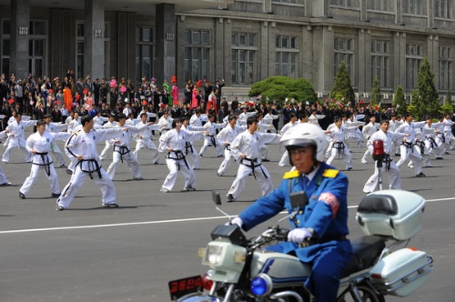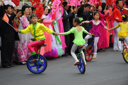 但是我还是被震惊了,尽管九年前作为中国军事友好代表团的一员,我曾经访问过这个国家,尽管这个国家从外貌上看并没有多大的改观,尽管它依然让我产生怀旧这感。但这个世界上能够以如此规模和方式来举办大型活动的,除了朝鲜,可以说已经找不出第二个国家。不管你如何看待朝鲜,平壤的传递日是举世无双的。