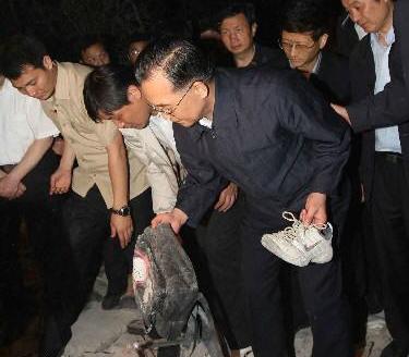 | 温总理攀瓦砾堆考察抢救孩子情况,激动流泪 | |
