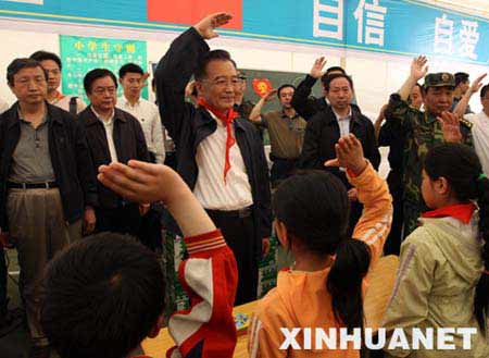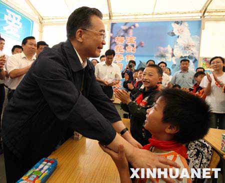 温家宝看望灾区复课学生 写下“多难兴邦”(图)