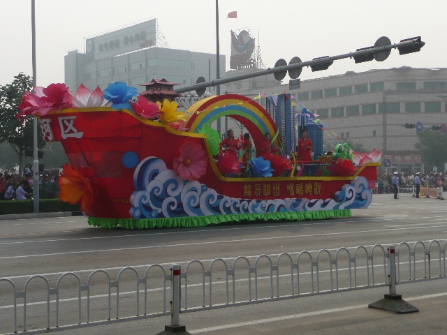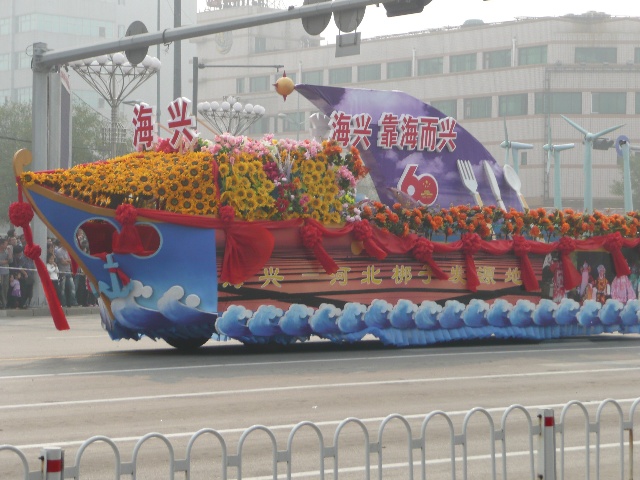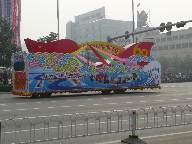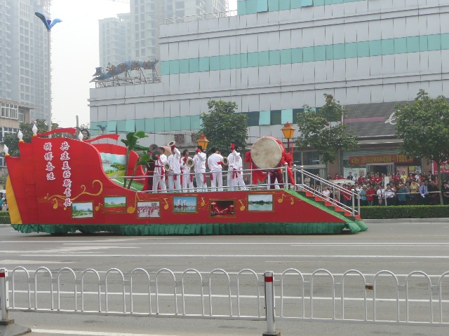 沧州为庆祝建国60周年,举办了一系列的活动。最吸引眼球的活动,就是大型花车巡游。今天上午,我市举行了盛大的“迎国庆 颂沧州”彩车展演活动,掀起了我市庆祝活动的高潮,展现了沧州在60年里所发生的变化。风格各异的34辆大型花车,18辆鼓乐车以及18个轿车方队在沧州市市区进行巡游。这也是沧州市规模最大的一次花车巡游活动。