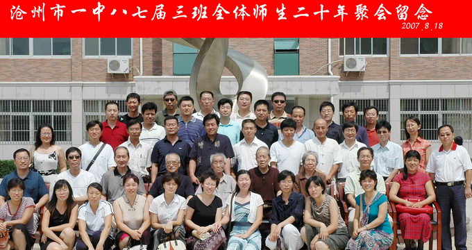 顾新立、钱卫军、李平、李宝茹、韩建阁、赵德明、张怡兰、张玉洁、王扶林等9位老师和40位同学出席了聚会。会议由班长张洪青、周芹主持。班主任(现一中副校长)