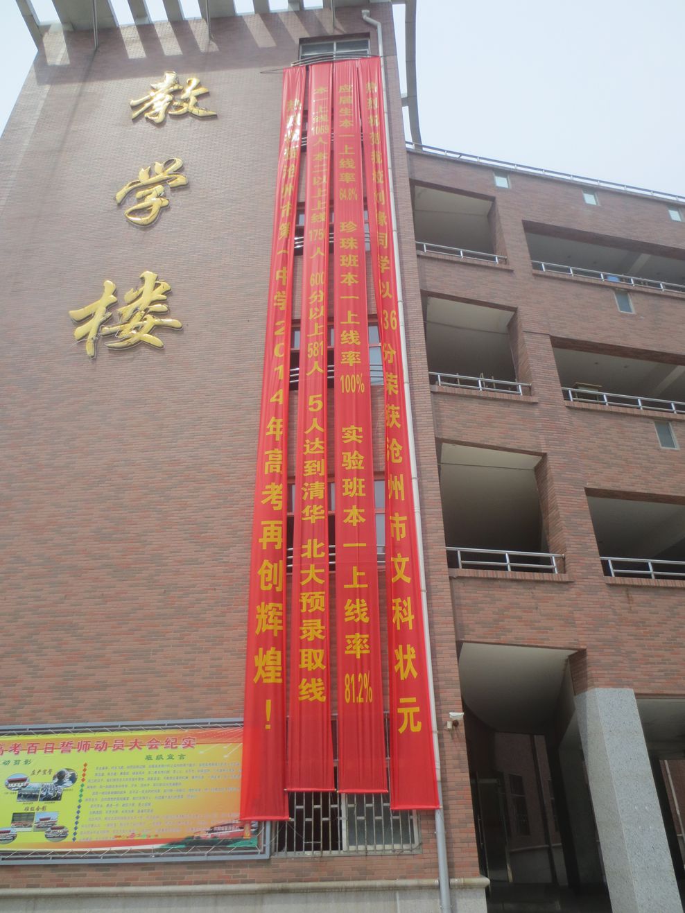 2014年,沧州一中将实现校园整体搬迁,我校以优异的高考成绩向新一中献上了一份厚礼。沧州一中双喜临门,我校全体师生愿与我市700多万父老共享荣光!