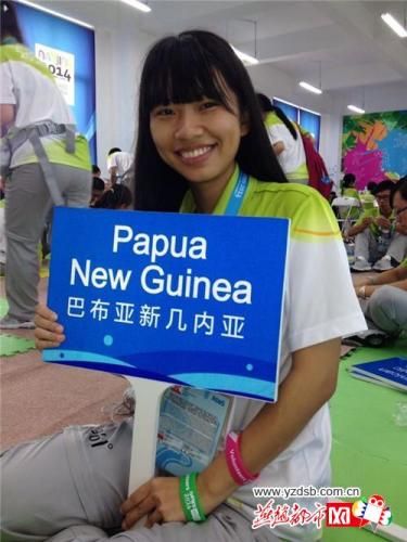 赵方圆服务的代表团有45人,包括一支女子足球队和游泳等项目的运动员。刚开始,交流稍显困难,但凭着亲切的笑容和活跃的思维,赵方圆迅速融入了这个小团体,与他们打成一片。在她看来,这些新朋友不仅有着可爱的面孔,而且友善风趣。每天一见面,都是一片欢声笑语。尤其是小她两岁的旗手芭芭拉,很快她们就建立了姐妹情谊。年近花甲的队医马可夫,他是我们国家体育总局的资深医生,是被联合国派往巴布亚新几内亚的援助专家。一天,赵方圆陪同马医生购买中医用银针和艾条,为运动员调理身体。天气非常炎热,他们乘地铁、倒汽车,从新街口到夫子庙,辗转多家药店才买到。赵方圆说:“一路交流才知道,马医生已经50多岁了,却不远万里去做国际志愿者。在他身上我看到了国际主义精神,他是我们90后一代的楷模。”