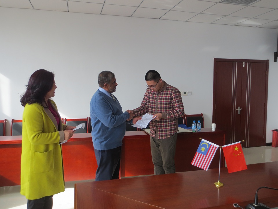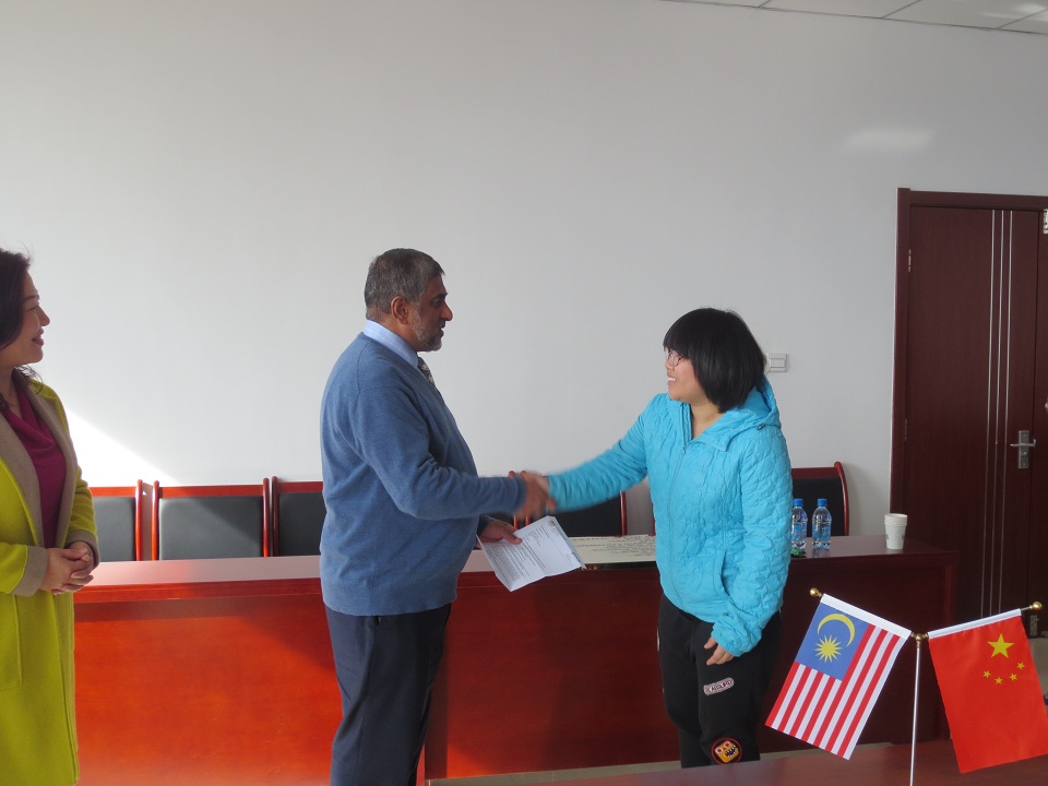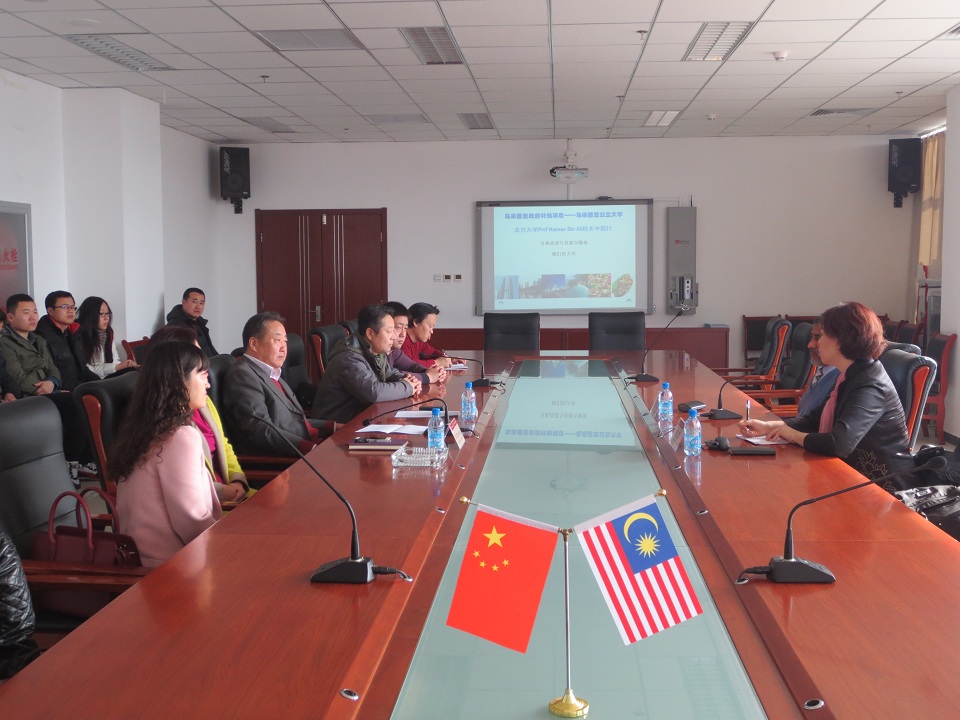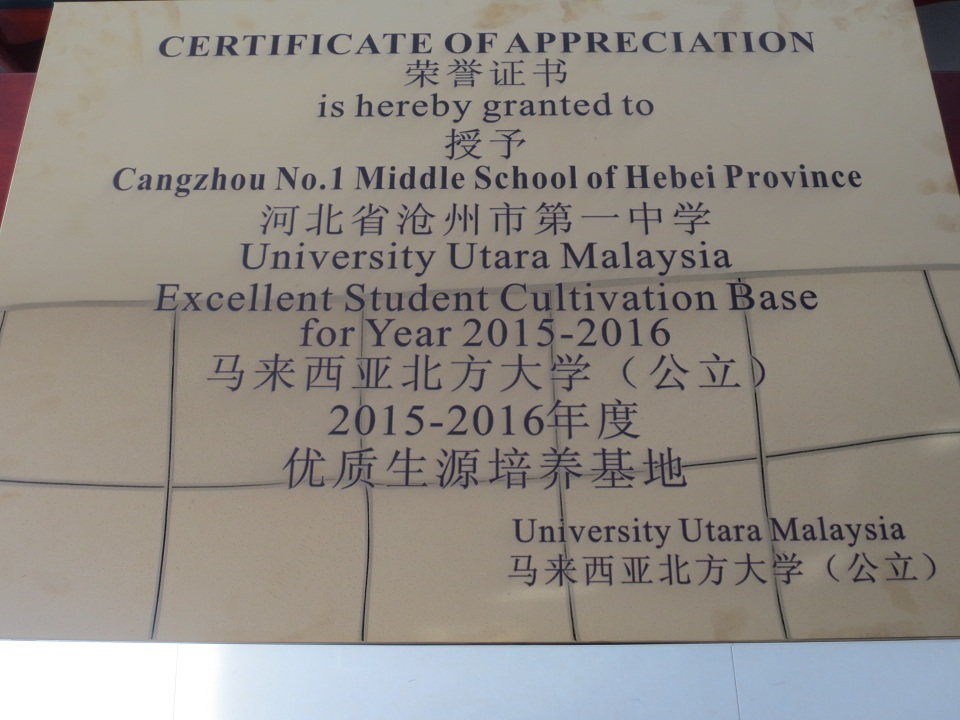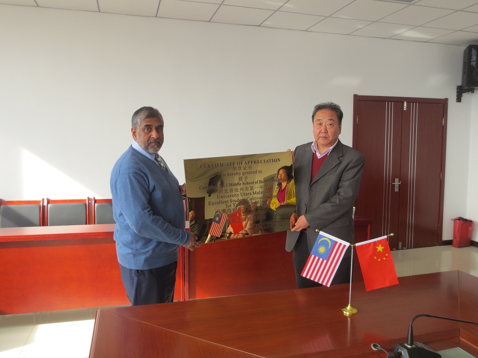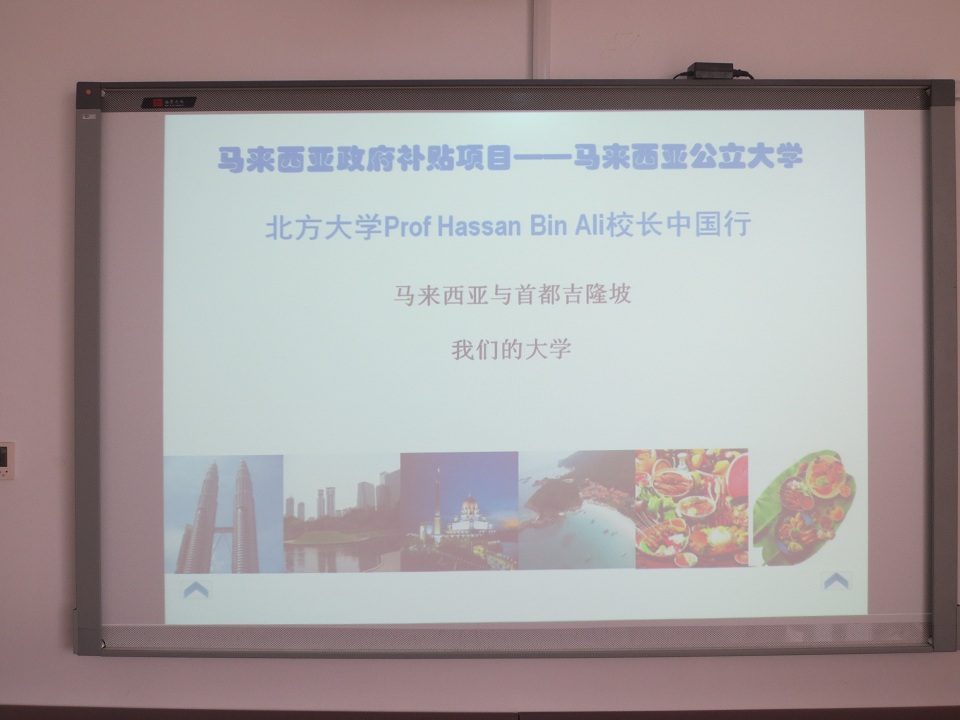 2015年2月4日(星期三)马来西亚北方大学副校长 Prof. Dr. Hassan B Ali(哈桑·宾·阿里)先生与北方大学境外办公室主任刘蓉女士访问我校,并进行北方大学优质生源基地挂牌仪式。同时,为我校申请学生颁发录取通知书。