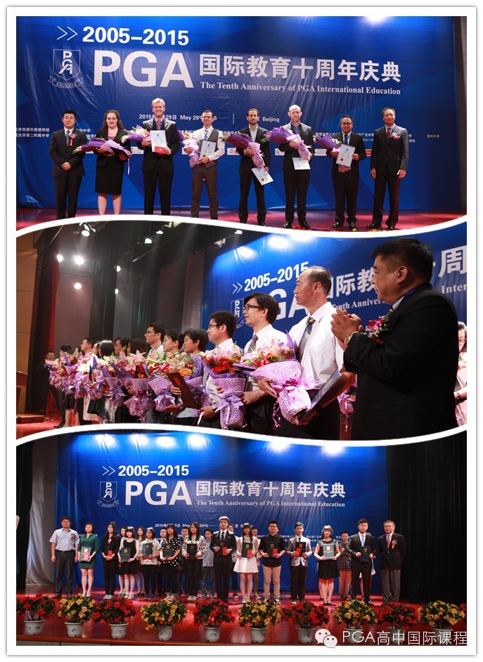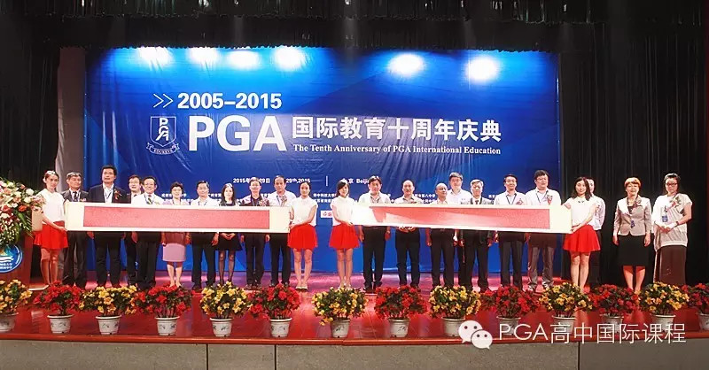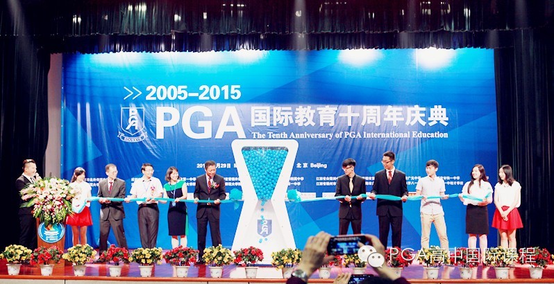 2015年5月29日,PGA国际教育十周年庆典在北京隆重举行。中教国际教育交流中心领导、海内外知名大学和教育机构领导、教育专家学者、国际教育出版集团代表以及来自全国各合作校的领导出席了庆典,300多位优秀师生代表、毕业生代表、在读生代表、家长们齐聚一堂,共同见证了PGA十周年的荣耀、梦想和喜悦!