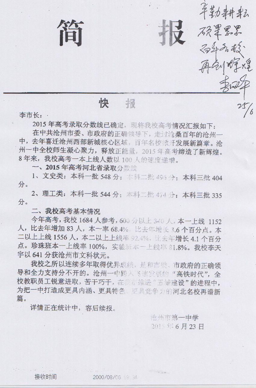 • 沧州一中高考再创佳绩2015-06-23 16:56