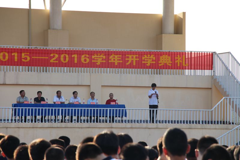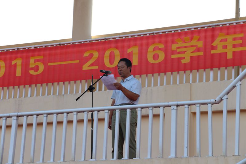 会上,校长刘月廷作了热情洋溢的新学期讲话。刘校长在讲话中总结、回顾了上学年的工作成就,并向全体师生提出了殷切期望和严格的要求。刘校长说,过去的一学年对一中发展来说是极其不平凡的一年,2014年9月,学校实现了整体搬迁,圆了数代一中人的梦想。学校搬迁后,实行了全寄宿、全封闭式管理模式,遇到了前所未有的压力和阻力。全体师生迎难而上,一年来,学校各项工作开局良好,办学效益稳步提升。在2015年高考中,各项指标均取得了新的突破。本一、本二上线率均居全市榜首,李天宇以641分获沧州市文科状元,耿晓壮同学考入了北京大学。2015年,我校1684人参加考试,600分以上340人,本一上线 1152人,本一上线率68.4%,比2014年提高3.6个百分点。本二以上上线1556人,本二以上上线率92.4%,比2014年提高4.1个百分点。珍珠班本一上线率100%,实验班本一上线率81.8%,有11个实验班本一上线人数超过40人。学校连续八年,本一数量以每年增加百人的速度增长,以优异的成绩向全市人民交上了一份满意的答卷。