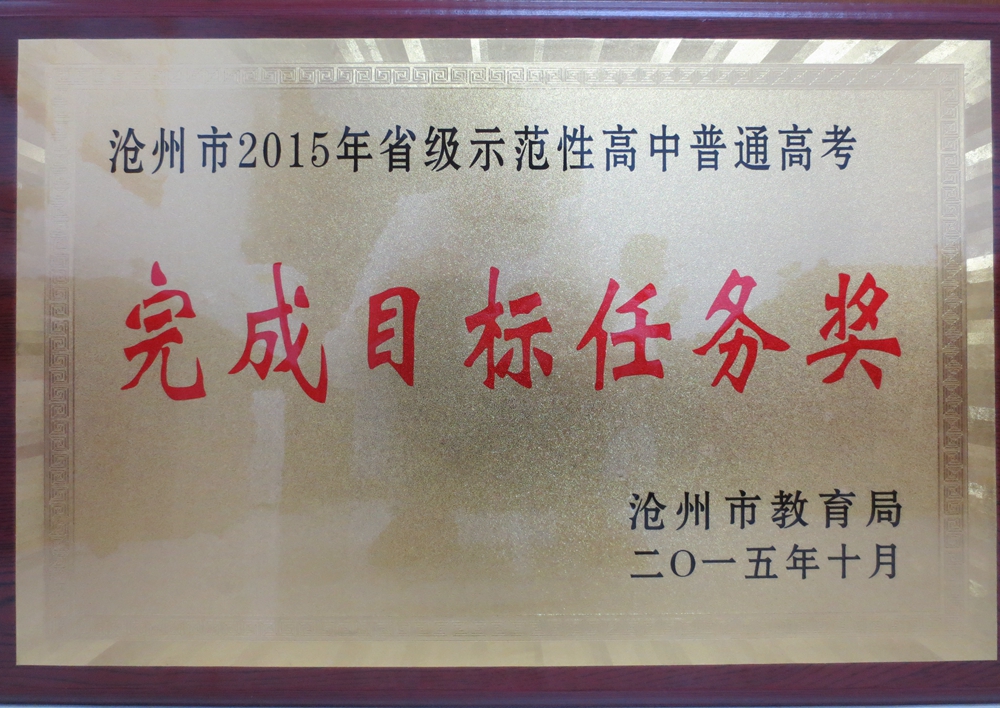 在日前召开的沧州市2015年普通高考总结表彰大会上,我校获得“高考先进单位奖”、“高考特殊贡献奖”、“高考完成目标任务奖”、“高考单科平均分奖”(全部第一名)。另,我校还被评为“沧州市教科研工作先进单位”。(马长水、常树青、李智)