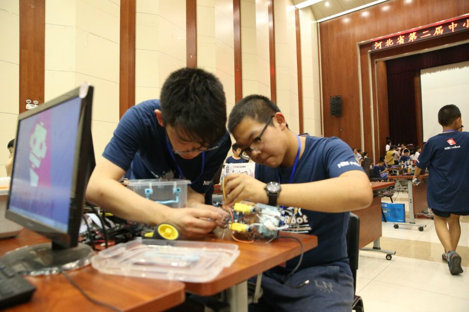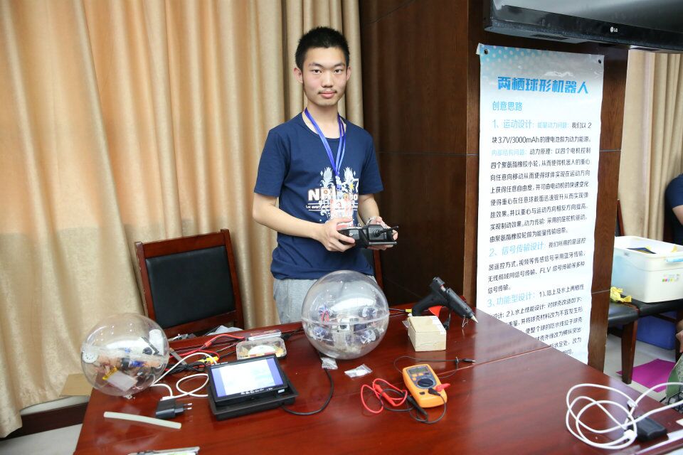 2016年5月29日,由河北省教育厅主办的河北省第二届中小学教育机器人大赛在石家庄市成功举办。我校代表沧州地区选派厚俊臣、张泽中等四名同学参加机器人创意赛和机器人综合技能比赛的角逐,最终我校参赛队员均以大比分取得以上项目的冠军,为我校及我市争取到本次比赛的最高荣誉。厚俊臣同学制作的球形机器人深受教育厅领导、大会裁判团及观众们的好评!