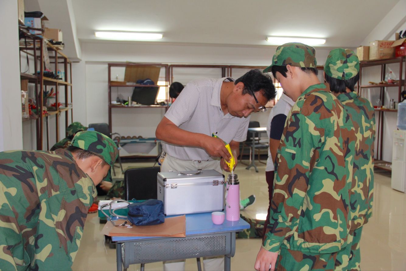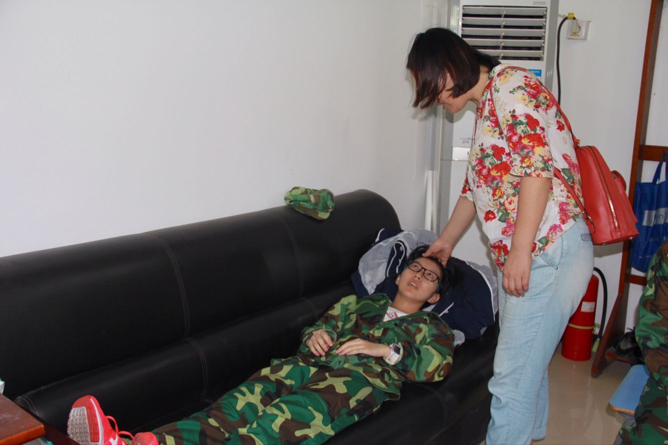 校医刘大夫,有条不紊地为同学们分发葡萄糖、测试心率,军训期间他都会在离同学们最近的地方为大家保驾护航!