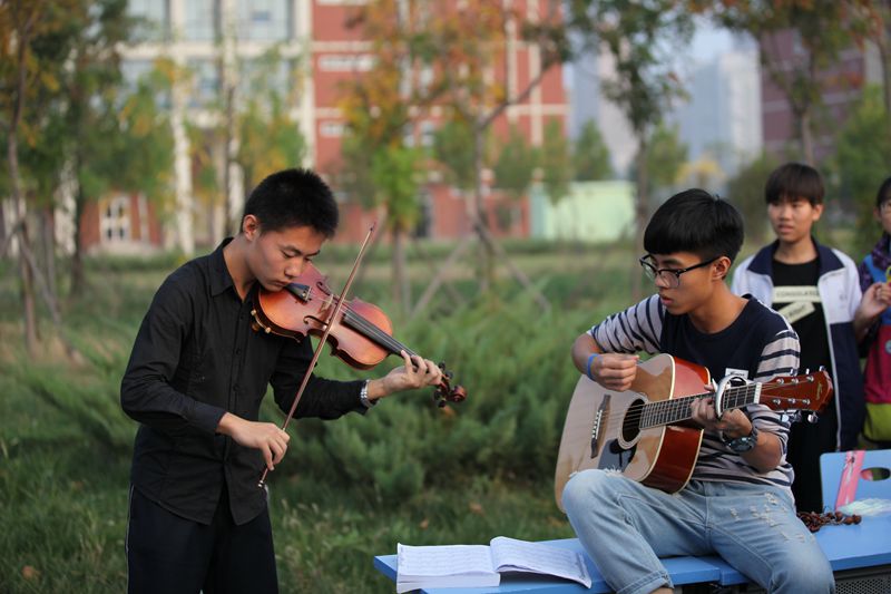 2016年10月19日下午,悠扬的琴声飘荡在一中的校园里,吸引了不少师生的目光,这是怎么回事呢?原来是高二25班的跳蚤卖场表演。