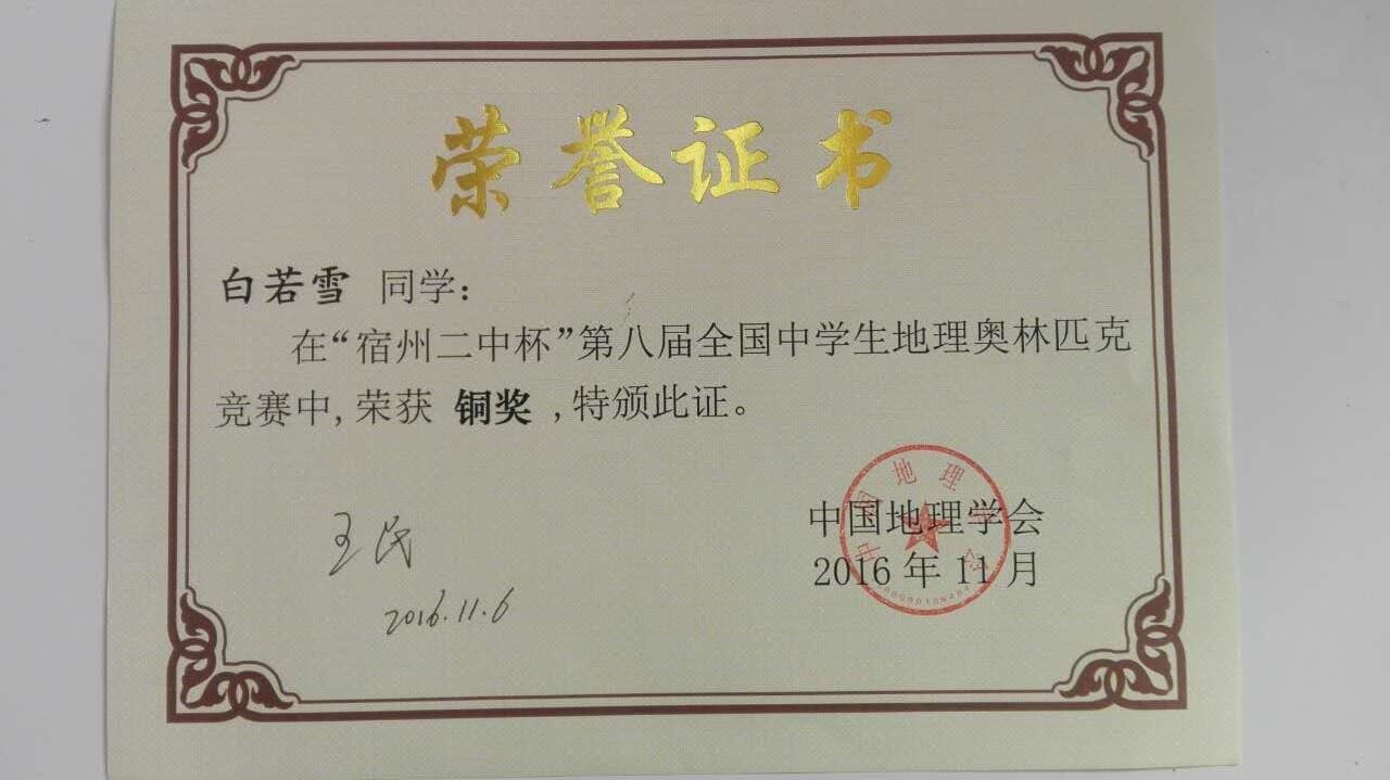 2016年11月4日—6日,我校李孝阁老师带领四名同学参加了在安徽省宿州市第二中学举行的第八届全国中学生地理奥林匹克竞赛。