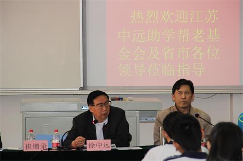 江苏中远助学帮老基金会理事长蔡卫东先生做了重要发言。蔡卫东阐明了此次座谈会的目的“排疑解难,助力加油”,展示了助学圆梦模式启动以来第一届圆梦班的辉煌成绩,与会师生倍受鼓舞。