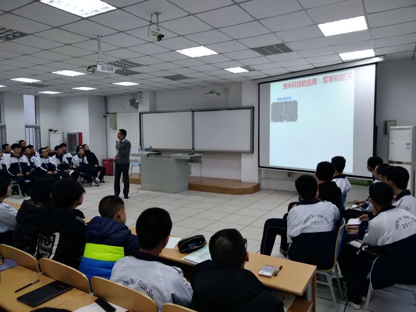 12月10日下午,中国科技大学物理学院秦胜勇教授一行四人在学校致远楼为高一年级学生奉献了一堂精彩的物理前沿讲座。