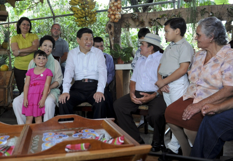 2013年6月3日,习近平和夫人彭丽媛走访哥斯达黎加埃雷迪亚省圣多明哥小镇农户萨莫拉一家,与萨莫拉一家人亲切交流。新华社记者 张铎 摄