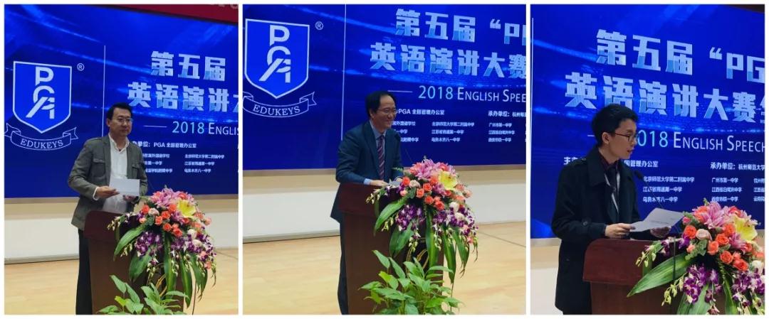 1月17日-18日,第五届“PGA之星”英语演讲大赛在PGA成员校杭州师范大学附属中学行政楼报告厅隆重举行。杭州师范大学附属中学党委书记尹立平先生、PGA全国管理办公室副主任孙天宝先生分别为大赛致辞,国际部主任徐英萍女士、PGA教学中心校长周全先生、PGA全国管理办公室市场部主任王义强先生以及中外籍评委嘉宾等出席了比赛,选手家长、随行老师和杭师附中的各年级同学们一起观看了比赛。