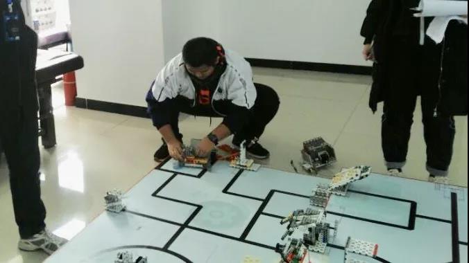 在FLL竞赛中,我校代表队的王天一,朱志坤等同学,每天利用课余时间调试程序,修改方案。对于每一个小细节、小改动都十分重视。比赛前一天朱志坤同学趴在赛台上调试设备,不小心把眼镜压坏了,但由于时间紧迫,便带着破镜子上了赛场。赛场上两位同学合二为一,王天一同学不但完成自己承担的任务,同时还当起了朱志坤同学的“眼睛”,帮助他完成后续工作。