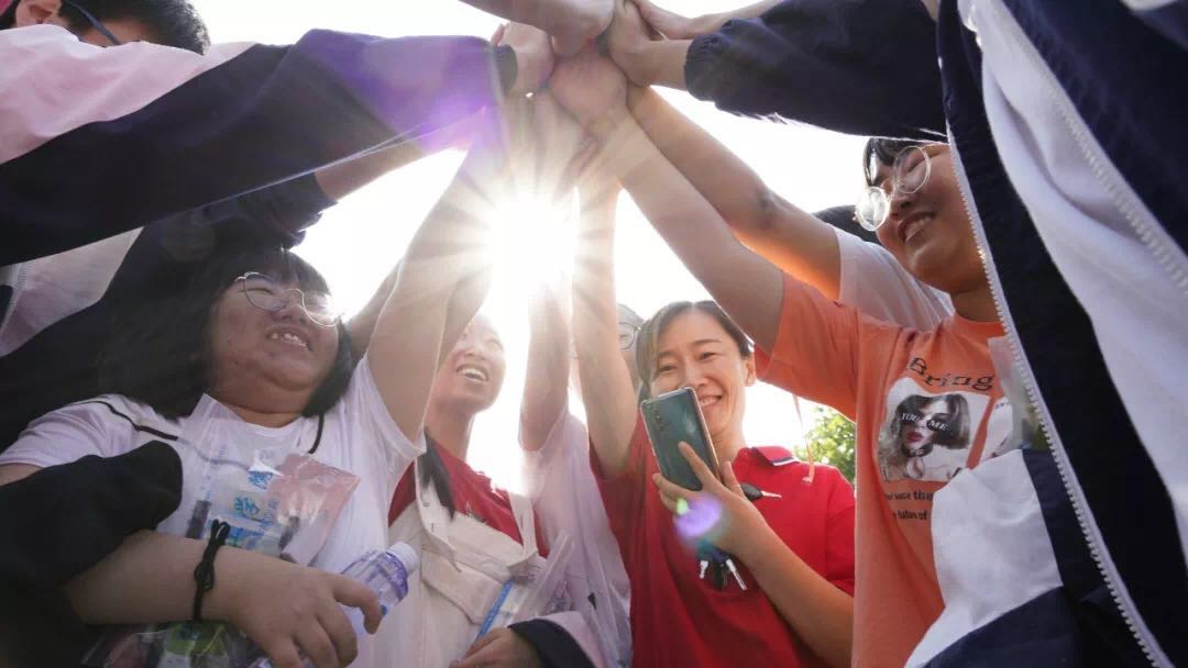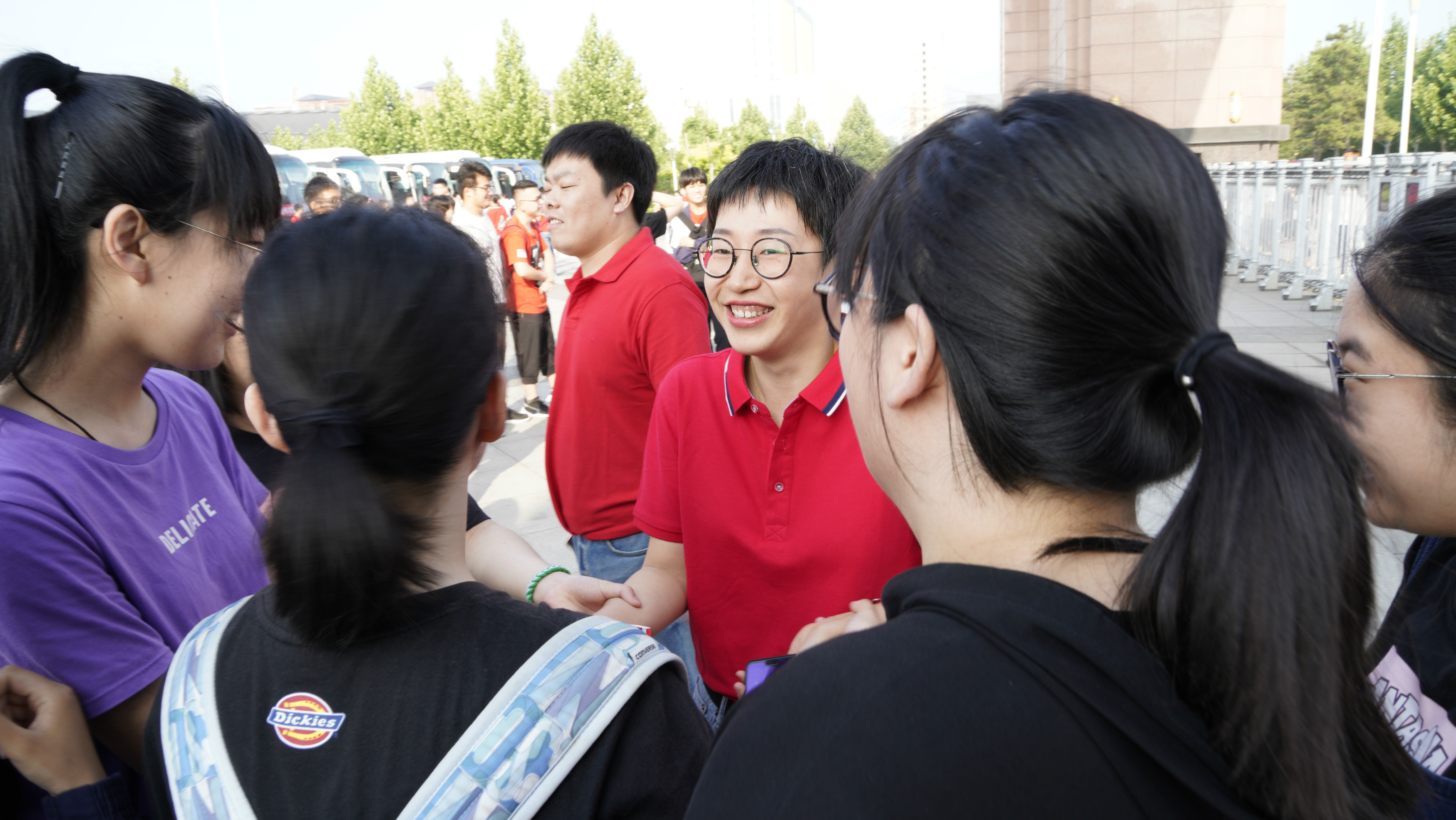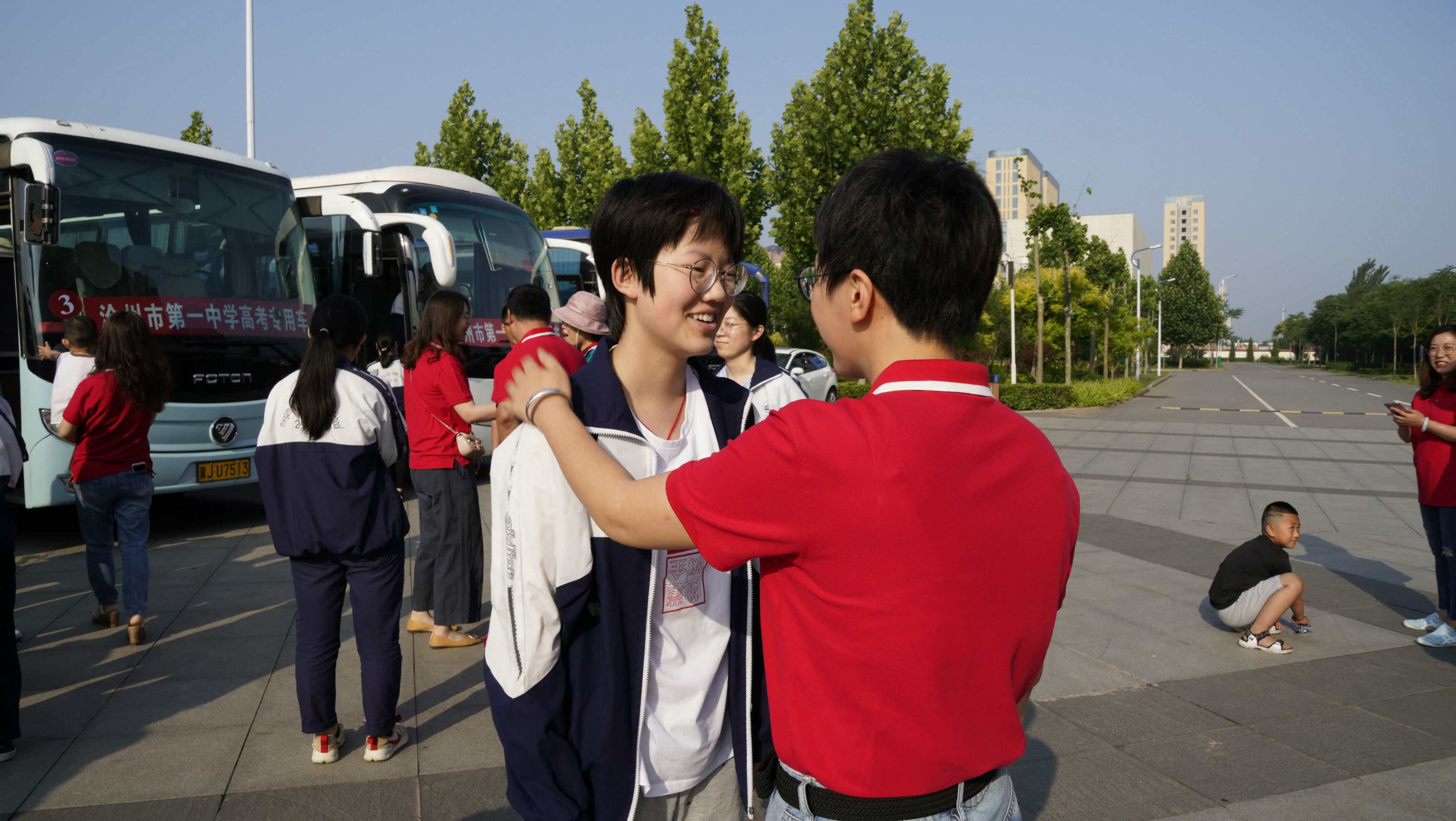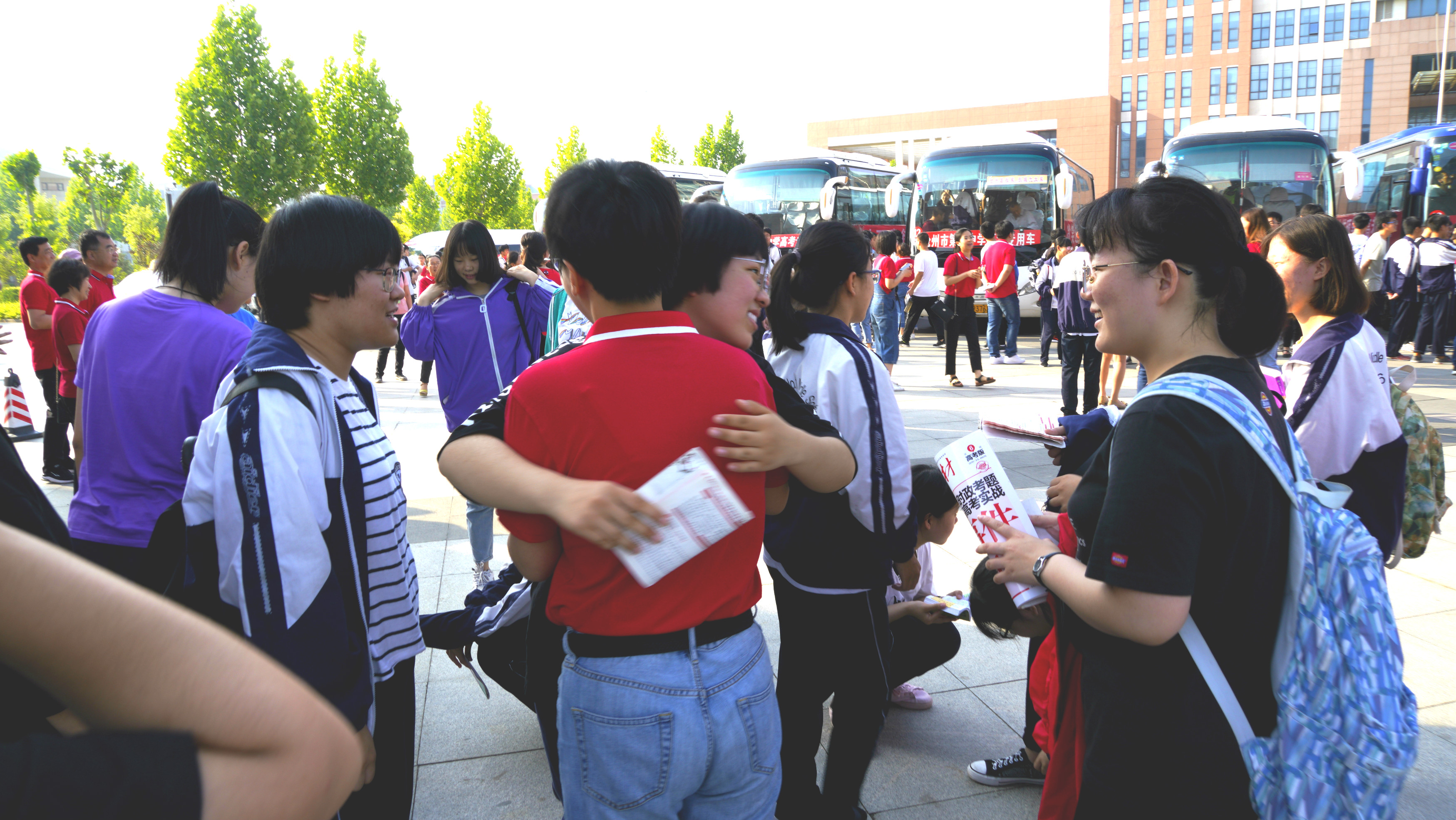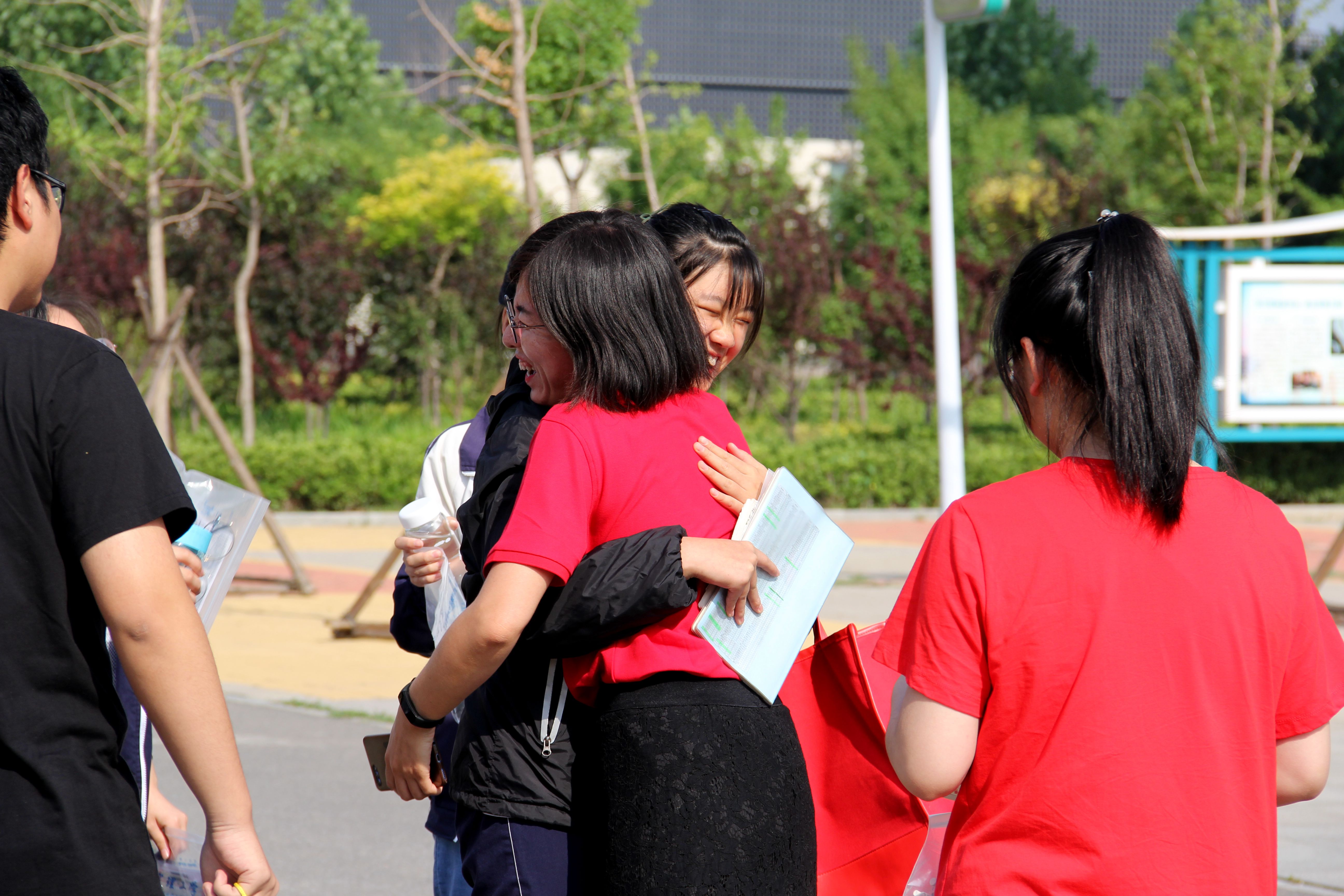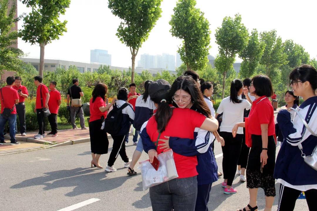 老师们面带微笑,与考生们热情相拥,送上最温暖的鼓励和祝福。