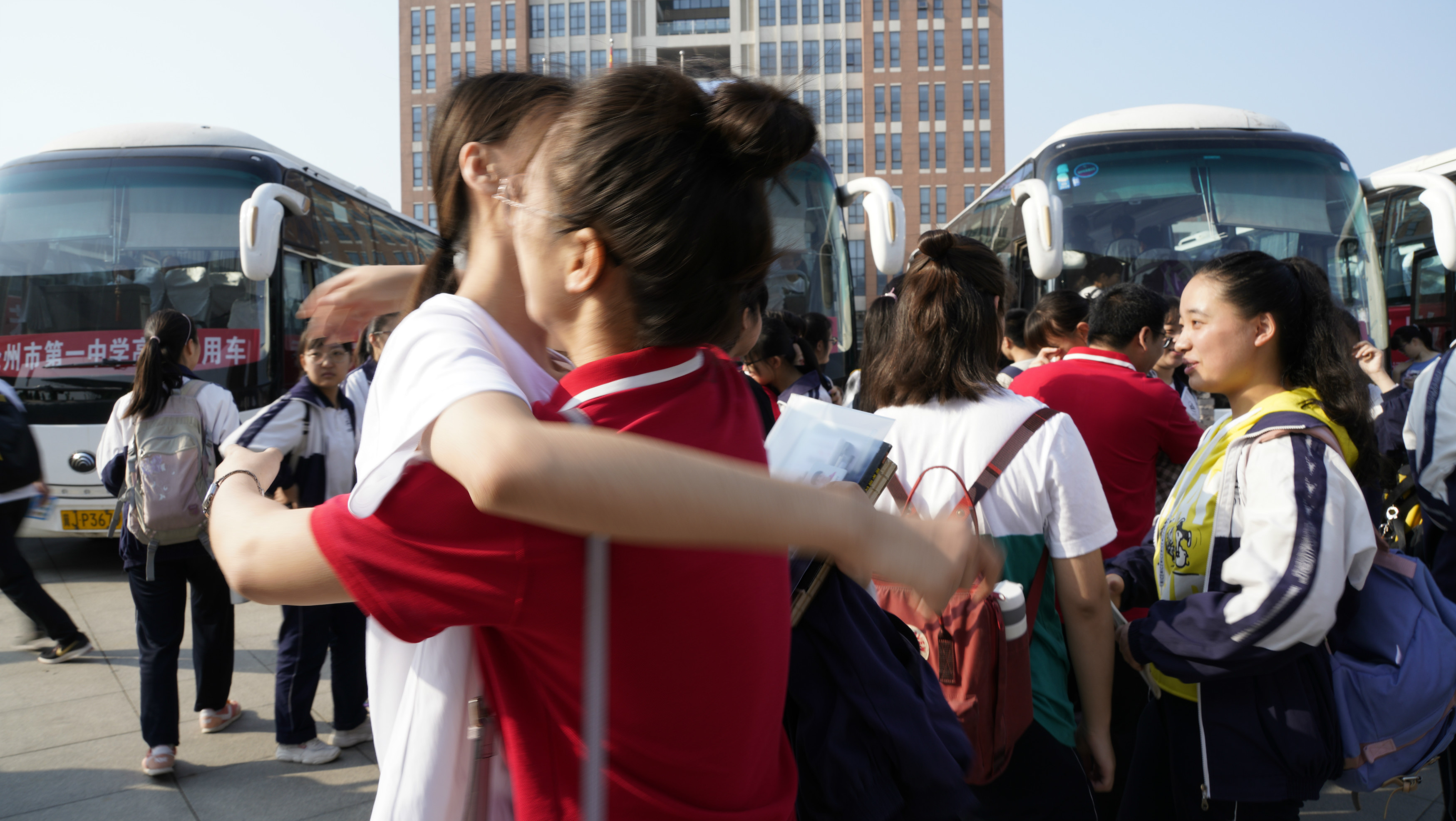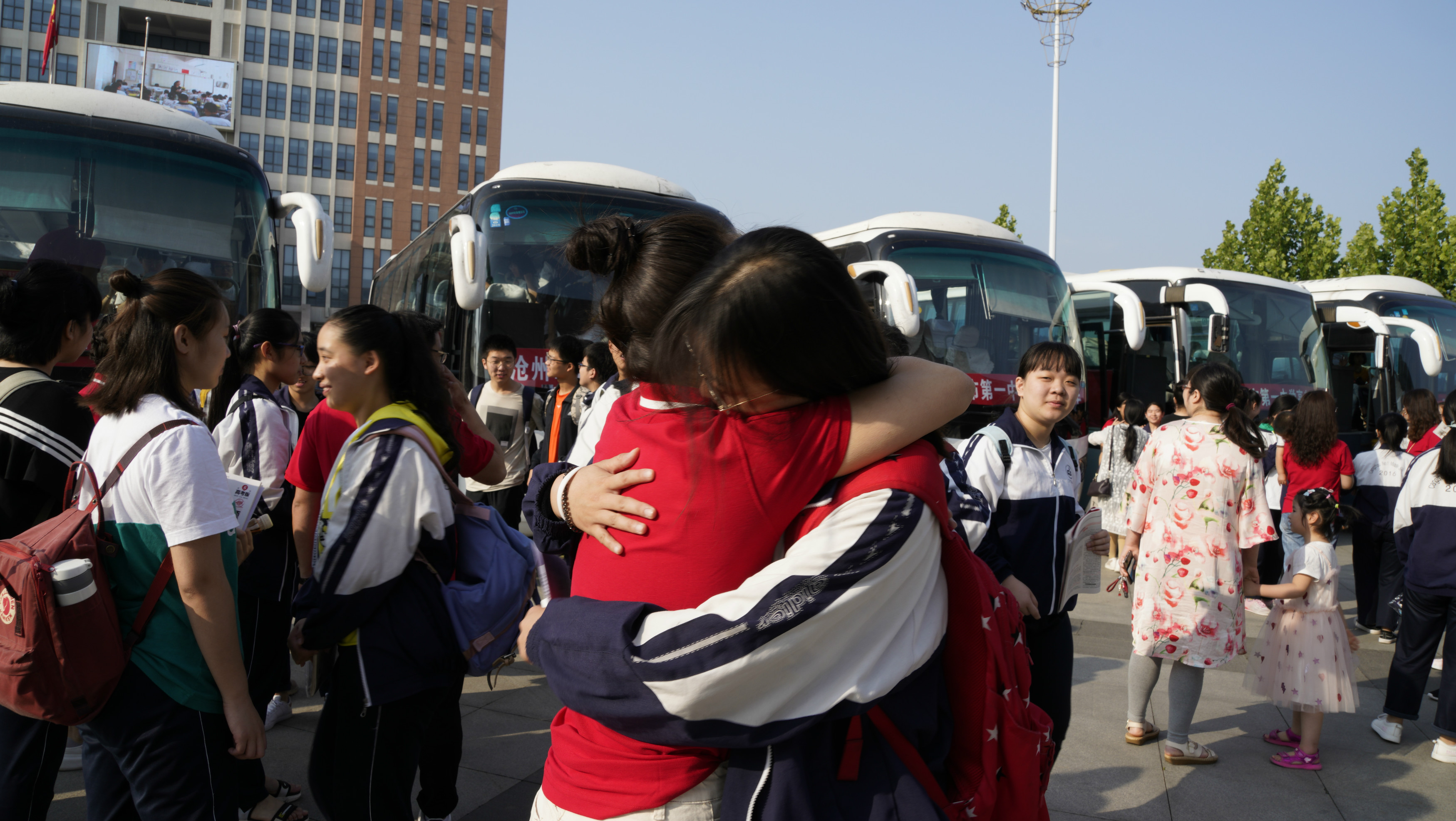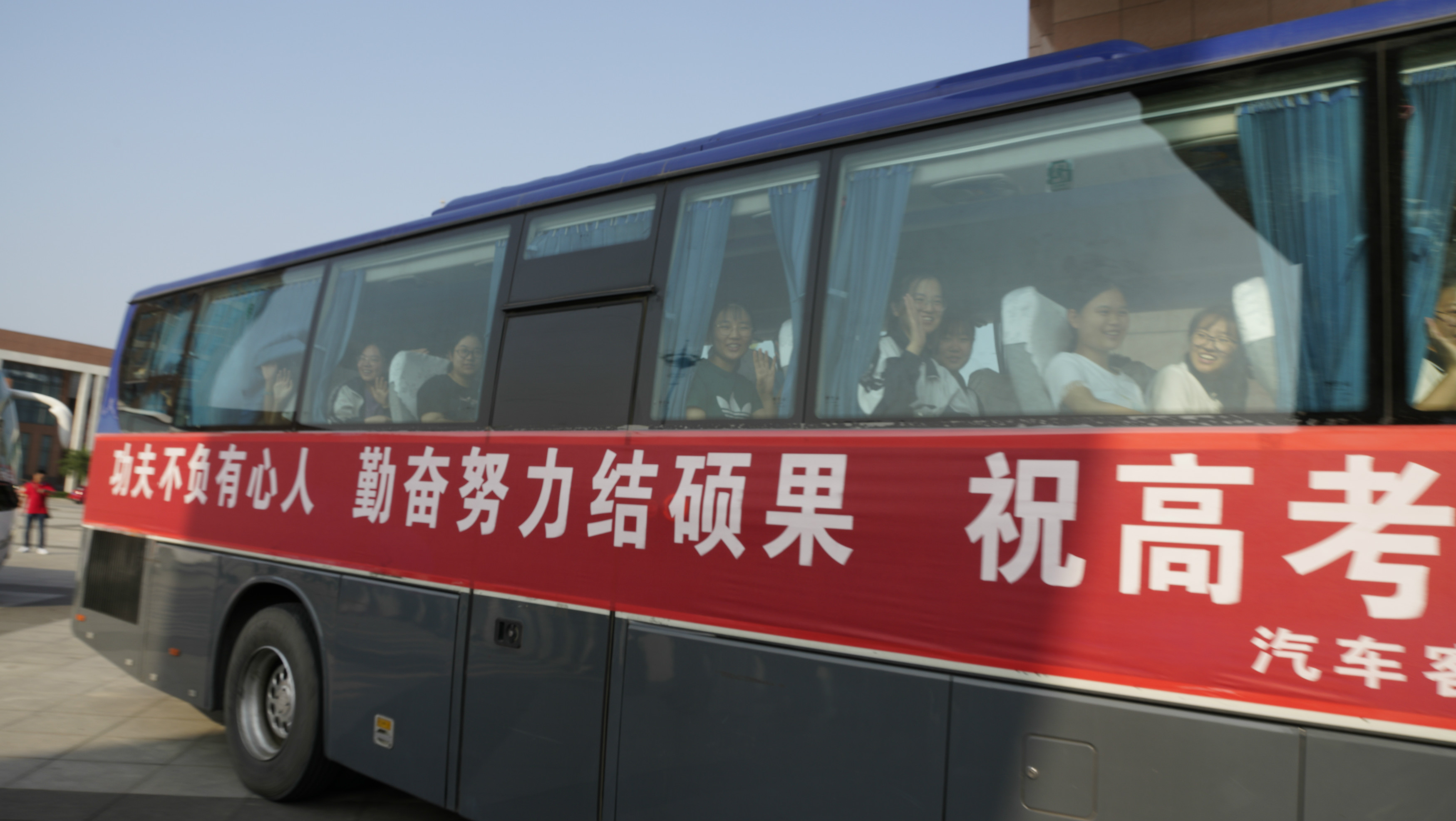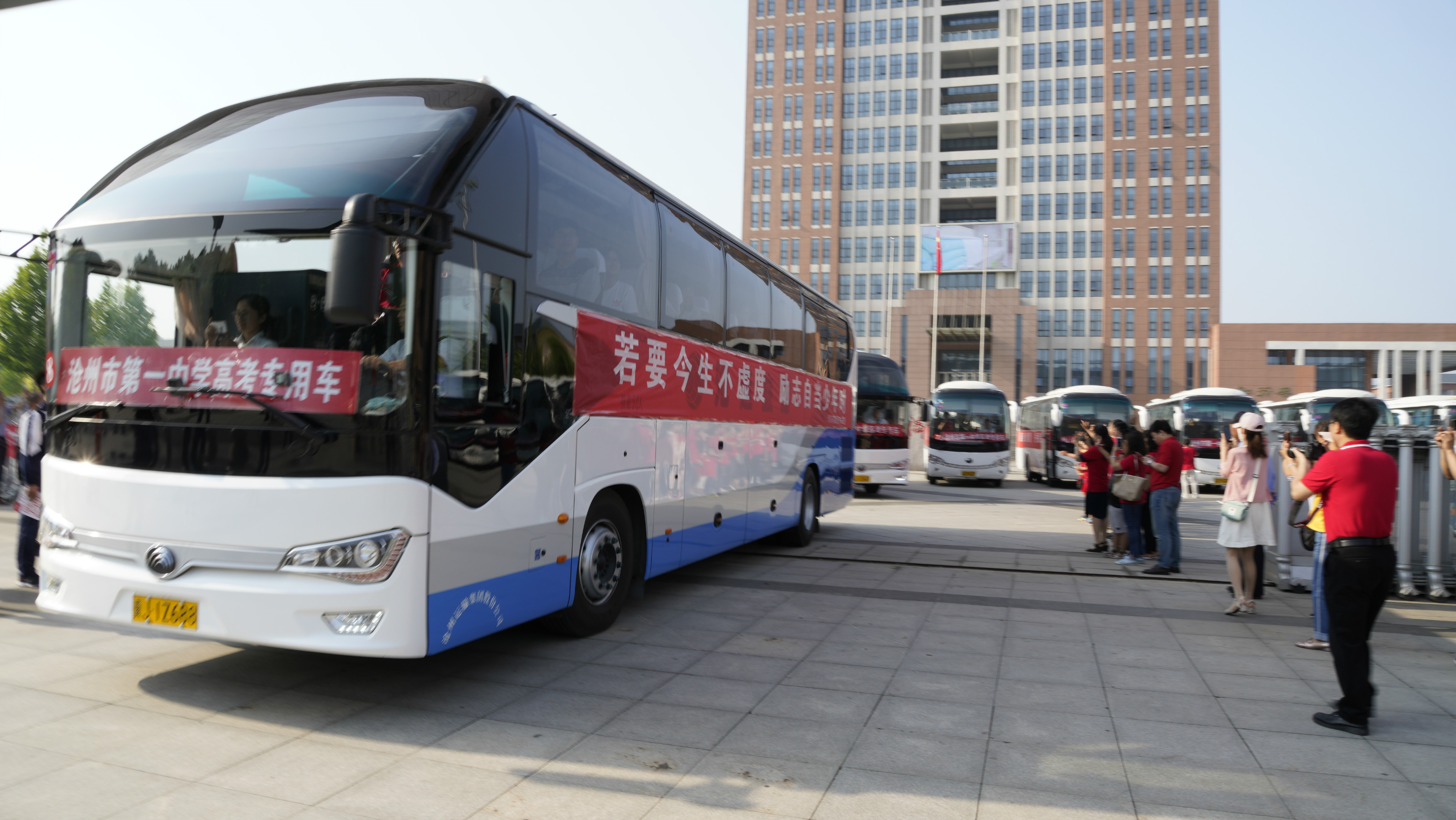 一辆辆载着莘莘学子的高考专用车缓缓驶出校园,高考学子们在老师们的深情期待中奔赴战场。