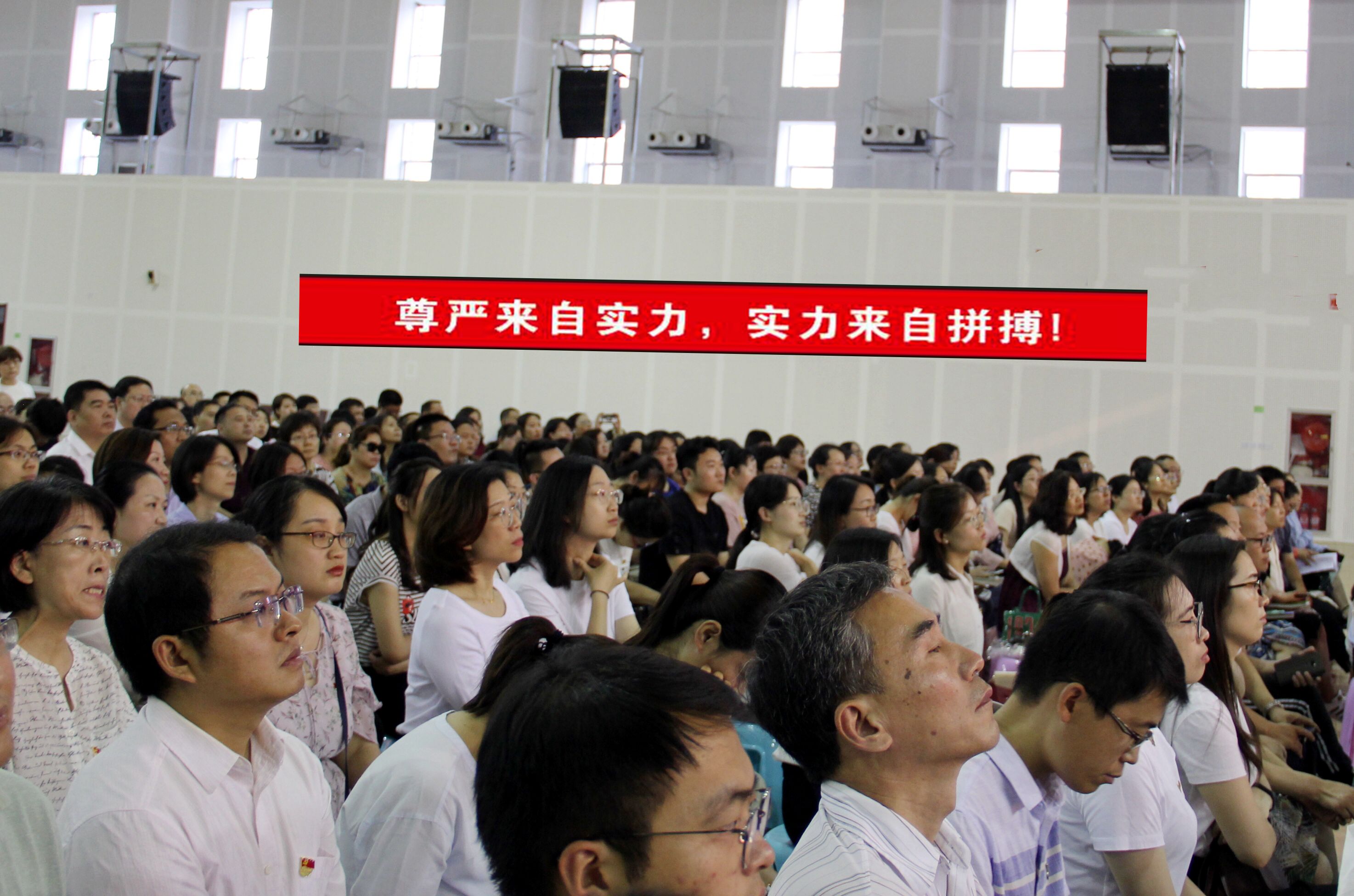 于校长在会上发表了热情洋溢的讲话。她说,最近有三件事深深地触动了她。一是今年高考送考,高三年级教师们心怀学生情系一中的责任感、荣誉感;二是高二年级在6月8号高考结束之后迅速燃起的激情和担当;三是6月13日市委市政府领导来一中现场办公,全力支持一中的发展。天时地利人和,一中再创辉煌的春天已经来临,一中将从此扬帆起航。