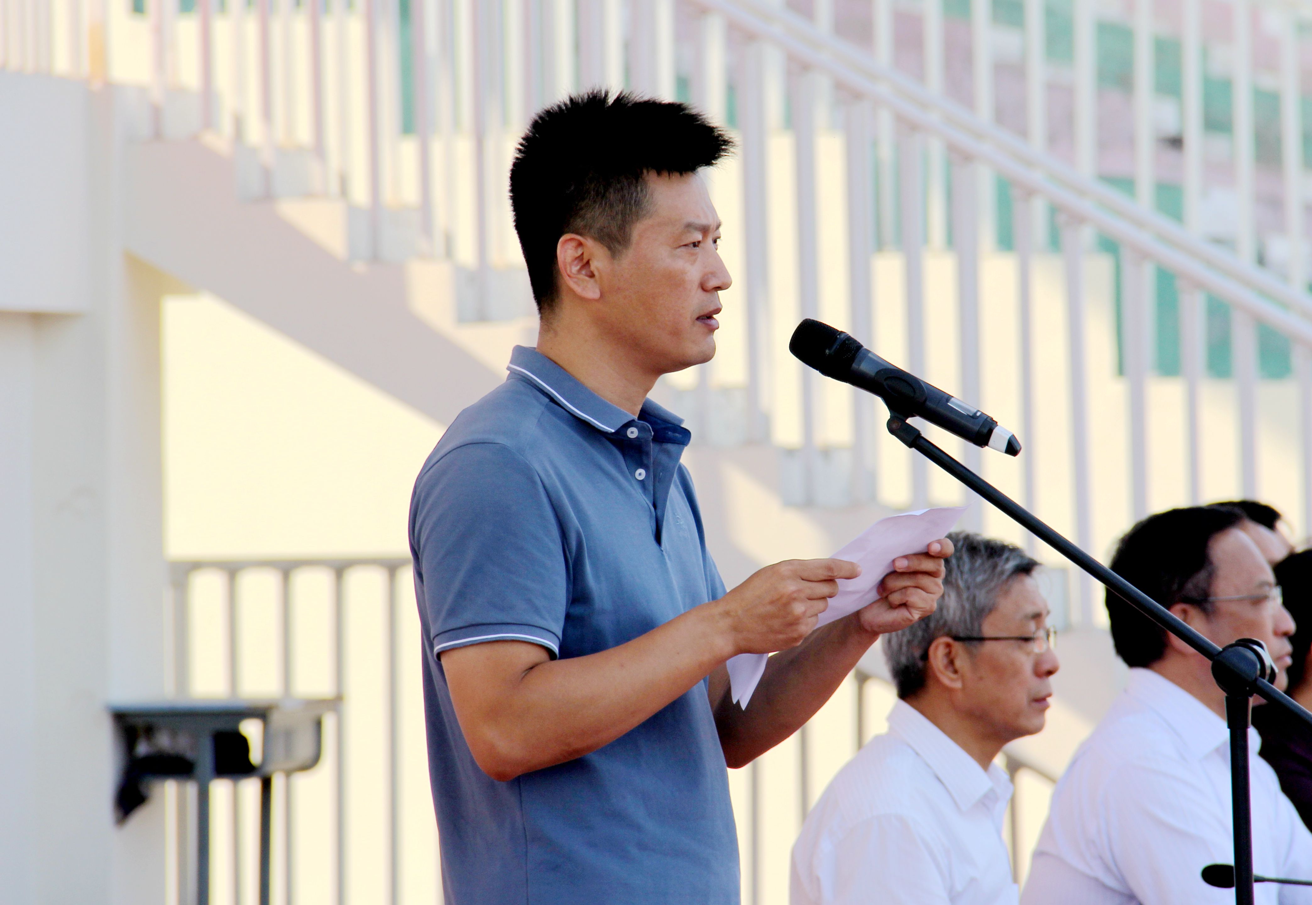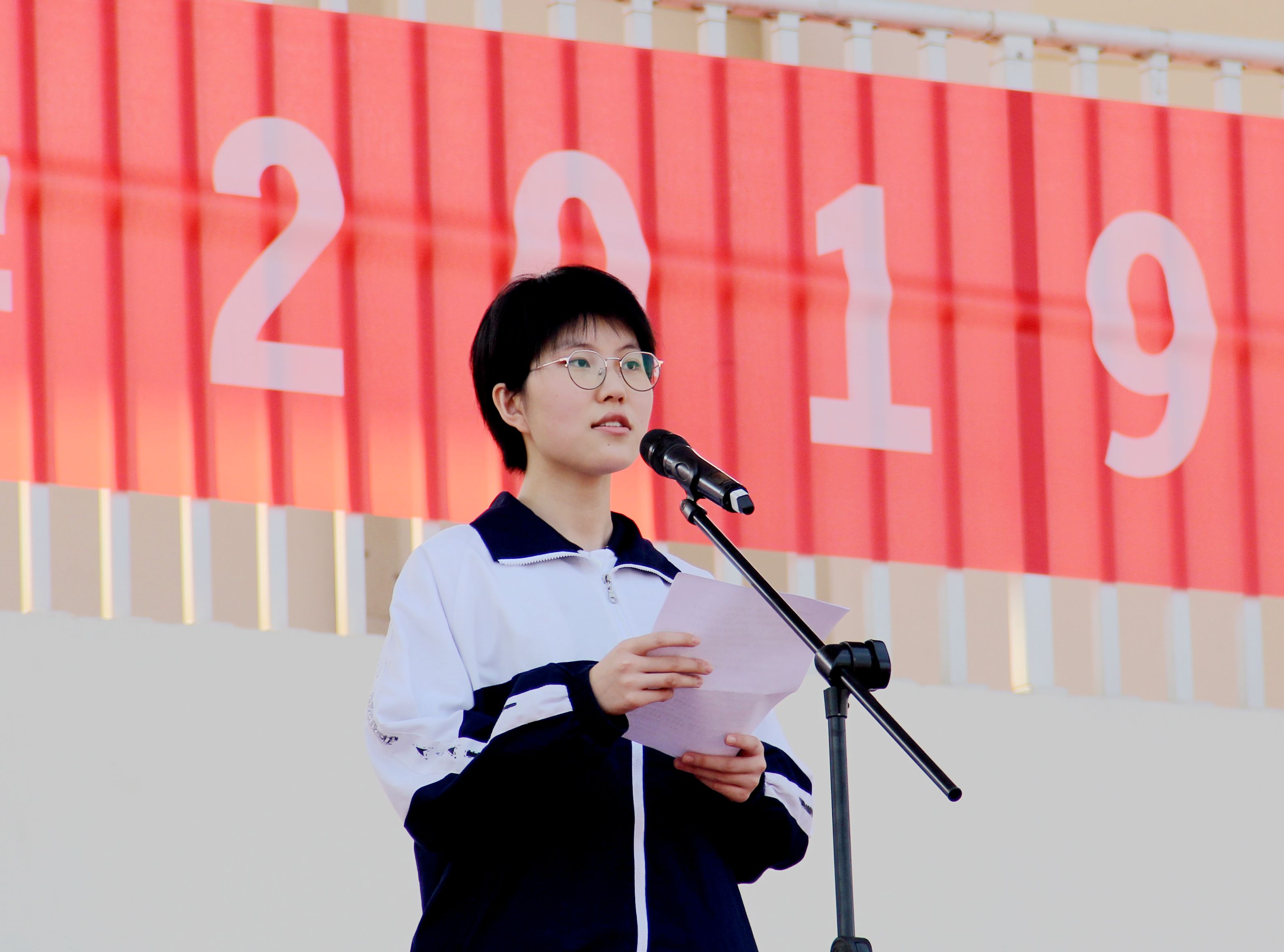 我校高一年级数学教师张向东代表全体教师做了发言。他希望高一的同学们认真做好每一件事,过好每一天;高二的同学们不忘初心,坚定信念,勇敢地面对挑战,赢得自己的尊严;高三的同学们努力拼搏,不留遗憾,致敬胜利,收获喜悦。