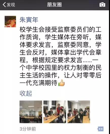 下图是一个媒体人在十一学校观察到的一个瞬间: