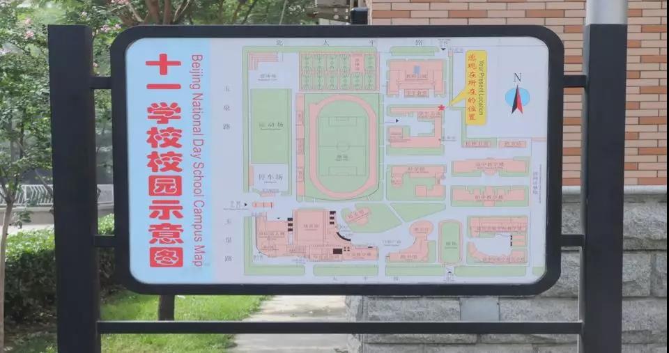 十一学校校园里过去的路标是这个样子,每一个路口都会告诉你向哪走。