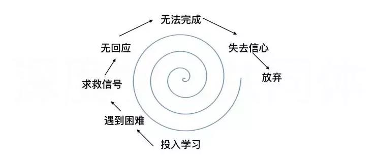 在对学生的学习过程进行观察的过程中,几乎所有的“学困生”都经历了这样的蜕变历程:投入学习——遇到困难——发求救信号——无回应——未能完成学习任务——受到负面评价——失去兴趣——直至放弃。