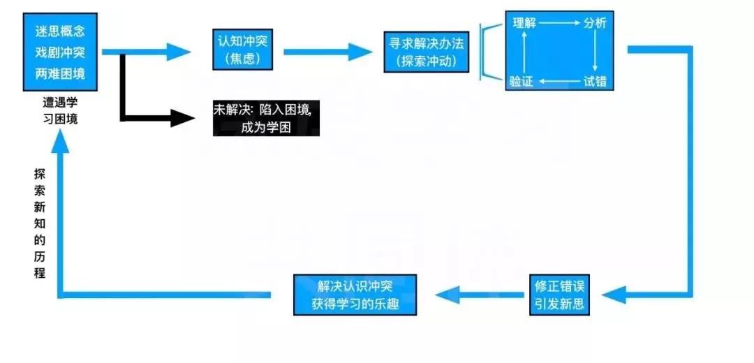 学生的学习动机最初产生于“学习困境”,在不同学科情境下可能表现为“迷思概念”、“戏剧冲突”或“两难困境”,这种不能解决、不能突破、不能澄清的状态就是所谓的“认知冲突”。