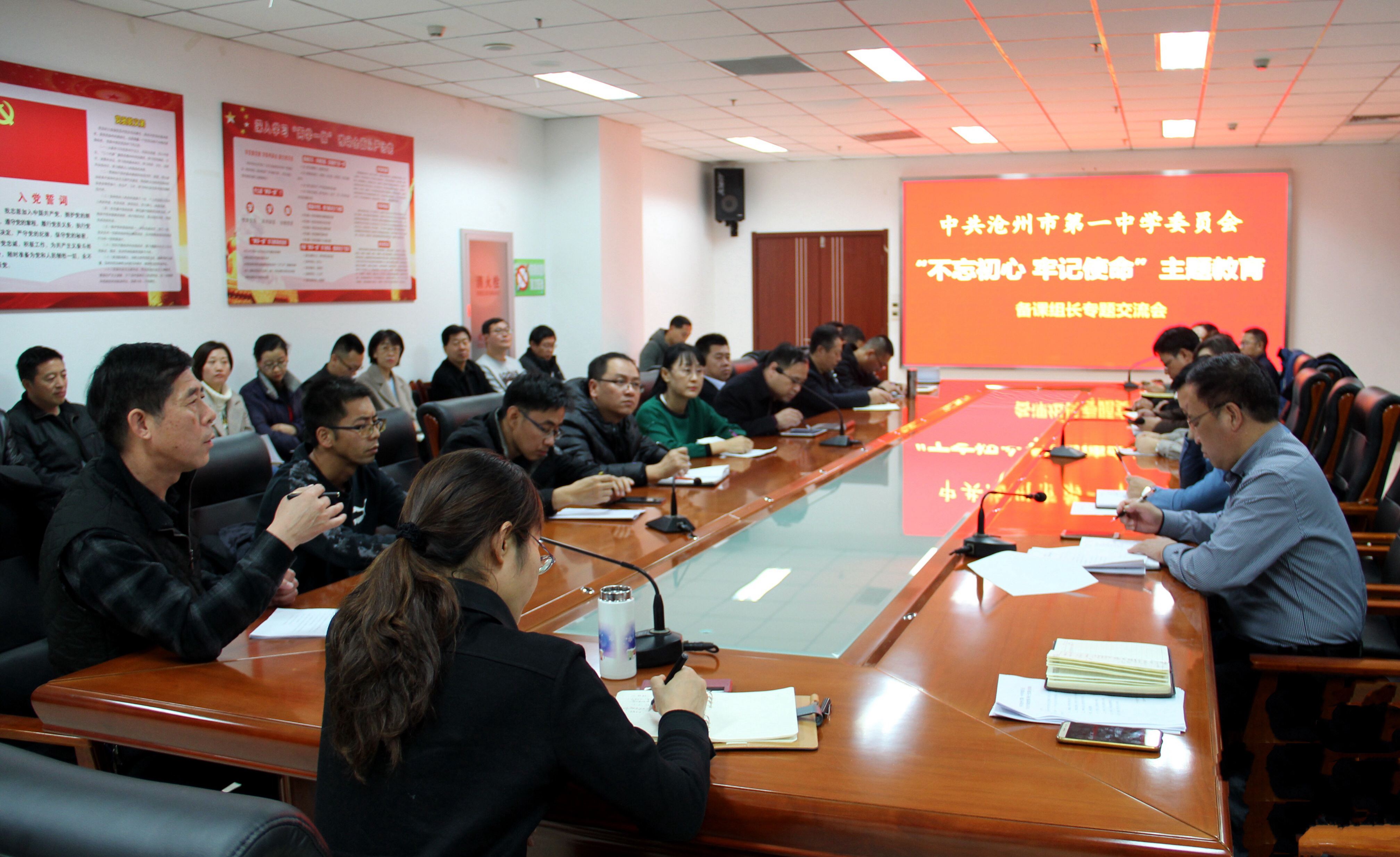11月18日下午,我校党委在知行楼六楼会议室召开了“不忘初心、牢记使命”主题教育备课组长专题交流会。该活动是我校主题教育系列活动之一。我校党委领导班子成员,各支部书记、委员,各年级部、科室负责人,全体备课组长、教研组长60多人参加了活动。会议由纪检书记宋学涛主持。