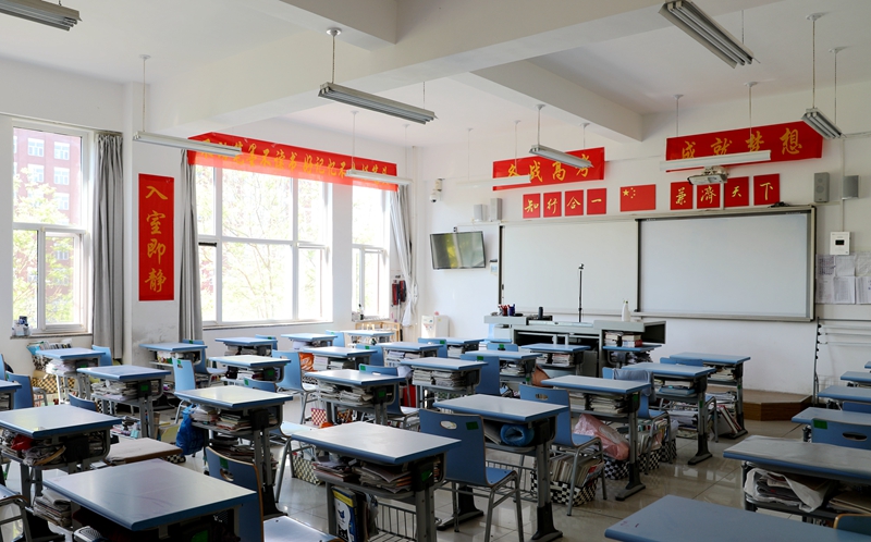 窗明几净,激情昂扬。安排好宿舍后,同学们迫不及待地来到了教学楼。为了学生们的健康安全,学校采用了小班教学的方式。原班级一分为二,每班在30人以下。高三年级学生们的教室分布在致远楼和阅微楼。