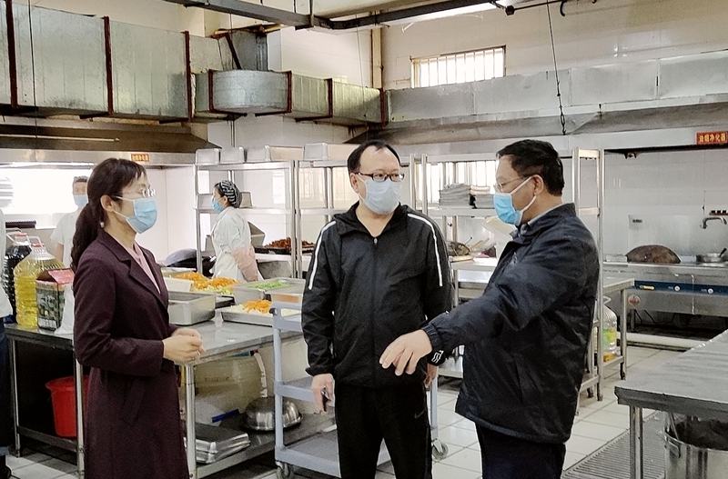 宿舍楼前,不同的班级的学生从规定通道接受体温检测,进入宿舍。“高三2班的同学,请按照这条指示路线进入宿舍楼,注意与前面的同学保持距离。”宿管老师认真地提醒同学们。