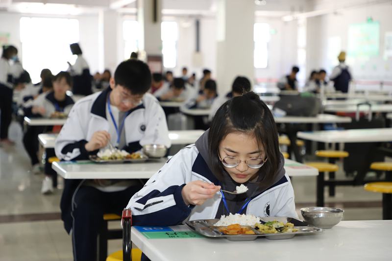走出餐厅,高三13班的董朔同学激动地对记者说:“终于闻到了熟悉的味道,吃到久别重逢、熟悉的饭菜了!在美丽的校园里,我们要珍惜当下,着眼未来,不惧风浪,扬帆远航!”