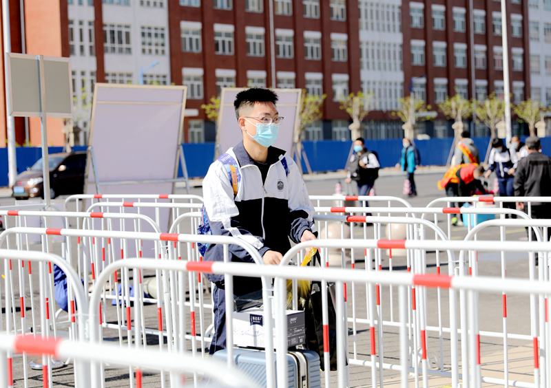 高三22班姬瑞晗同学说:“看到老师和同学我感到非常高兴,同时内心也感到忐忑,因为有两个多月时间就要高考了,未来我将好好学习,调整心态,争取取得优异的成绩,回报师长!”