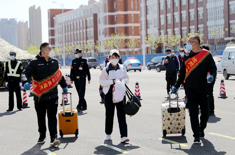 在学生处和年级部老师们的帮助和引领下,学生们间隔1米,戴着口罩,拎着行李,沿学校南门八个测温通道测温后,依次进入校园。见到久违的老师和同学,同学们即使戴着口罩,也掩藏不住内心的幸福和喜悦。春天的一中校园里到处弥漫着青春和欢乐的气息。