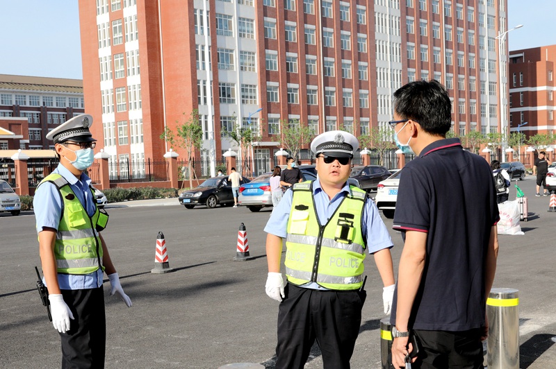 公安干警、交警与老师们一起为学生入学护航助力。