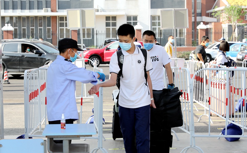 同学们带着重返校园的欣喜和憧憬,有序排队、接受检测、陆续入校。有了高三年级学生复学的成功经验,高一、高二年级入学防疫工作做得更加严格、规范。