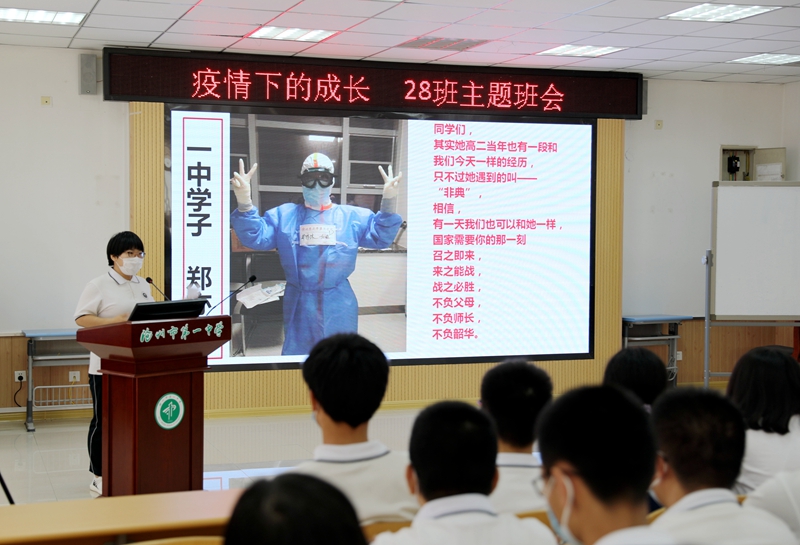 我校党委书记、校长于秀娥参加了活动,并对师生精彩的表现给予了充分肯定。她希望高二年级的学生们在历经了这场疫情的大考之后,把收获的感悟和思考落实到具体的学习生活中去,坚定目标,只争朝夕,不负韶华,以最佳的状态迎接高三的挑战,做努力奔跑、追梦的一中人!
