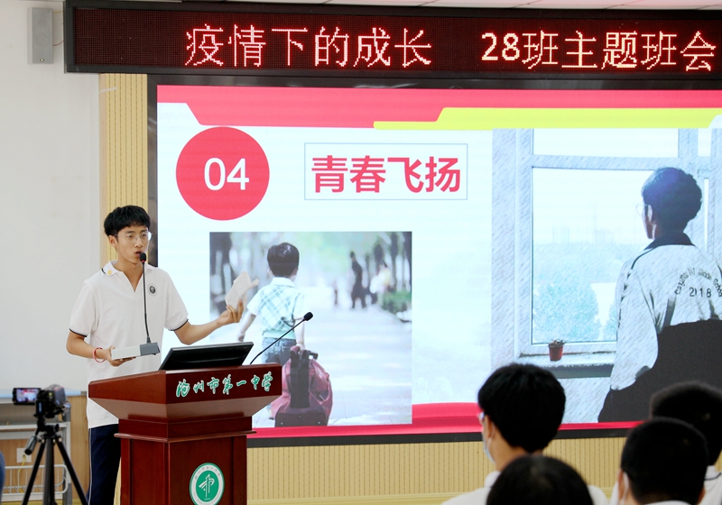 近日,高二年级部组织开展了“疫情背景”主题班会课观摩活动。6月19日下午,高二28班在阶梯教室召开了主题班会。我校党委书记、校长于秀娥,副校长顾新立,学生处负责人孟祥勇,高二年级部主任倪小生及全体班主任老师参加了活动。