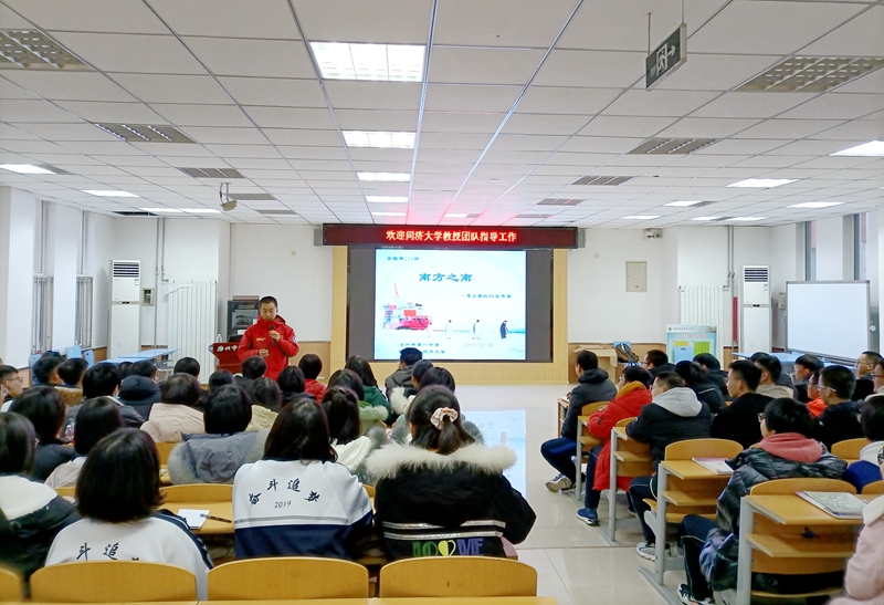 陈华根教授围绕“为什么要去南极?”、“怎么去南极?、“怎么进行南极考察?”三个主题向我校师生详细介绍了自己到南极科学考察的经历,介绍了南极的各种资源、地理位置、登陆方式及科学家们如何在南极考察,并从多个维度阐述了中国在南极建立科学站的意义,分享了自己的所见所感。陈教授所讲的每一个话题都激起了我校学生的浓厚兴趣,激发了他们对未知世界探索的热情。陈教授丰富的学识和幽默的语言赢得了同学们的阵阵掌声。