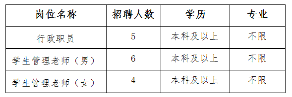 岗位包含行政职员和宿管老师。见习时间为2021年9月1日至2022年6月30日。工资每月1800元起步+1年人身意外险。