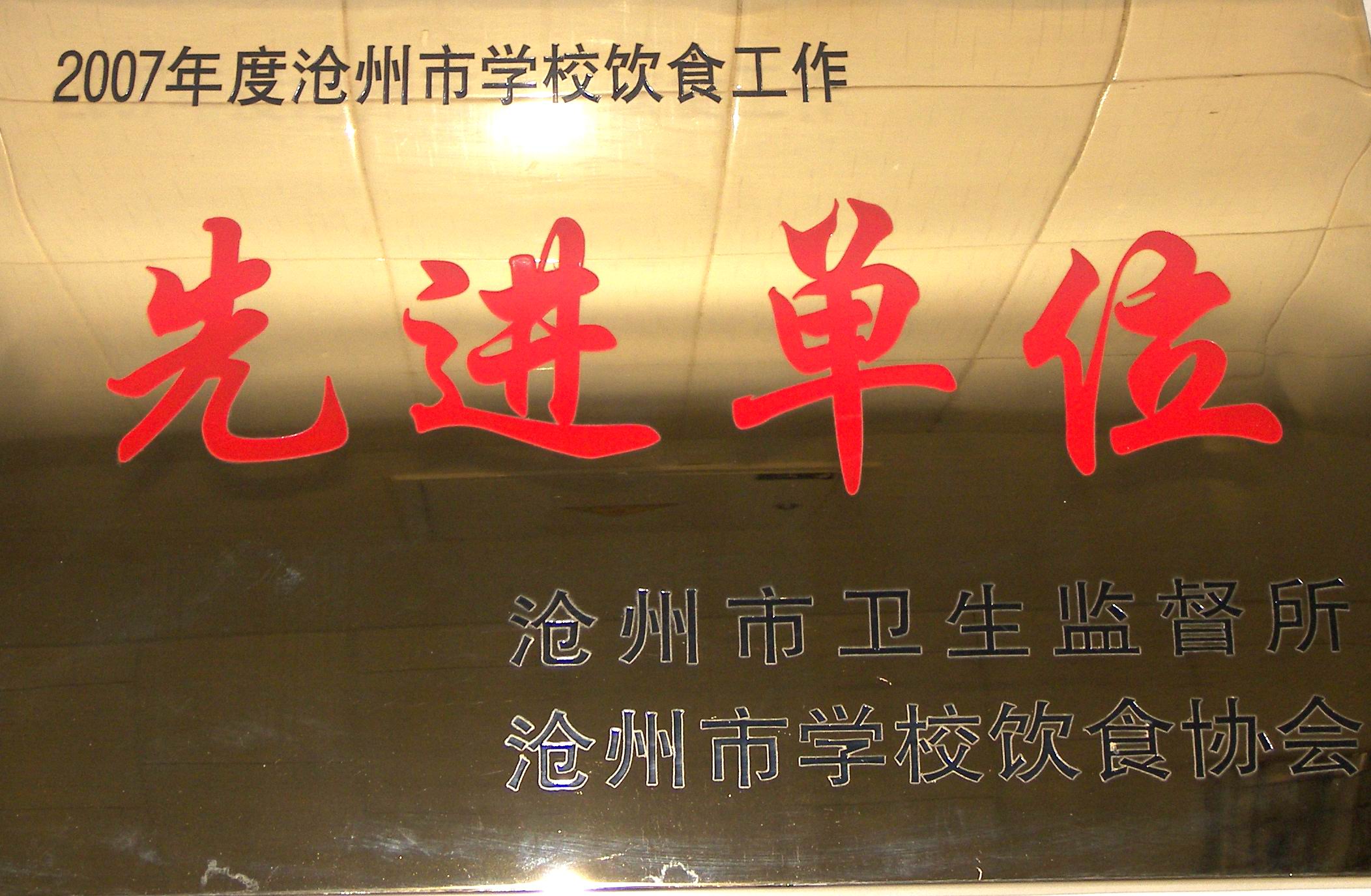 我校被评为2007年度沧州学校饮食工作先进单位