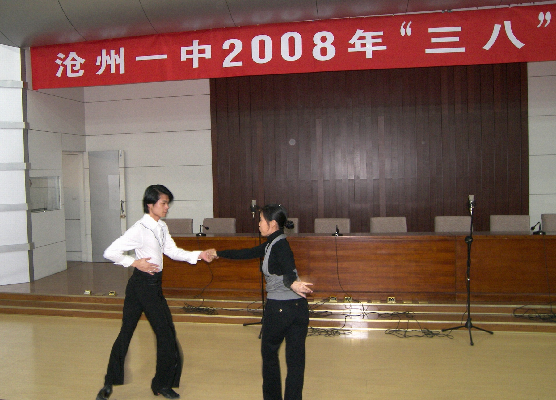 我校女教职工占全校教职工总数的半数,她们是学校各个工作岗位的中坚力量,是一支师德高尚、业务过硬、敢于创新、勇于拼搏的优秀的女职工群体,她们为学校的发展做出了卓越贡献。联欢会上大家尽情地高歌欢舞,挥洒着青春的气息。整个联欢会充满了欢乐、和谐、团结的气氛,虽然节目不多,但充分展示了我校女教职工的风采,掌声、助威声和欢乐的笑声回荡在报告厅上空,特别是男教师表演的节目“三句半”将联欢会推向了高潮。