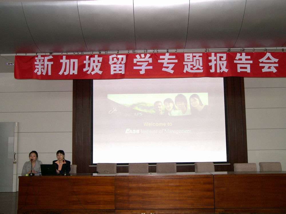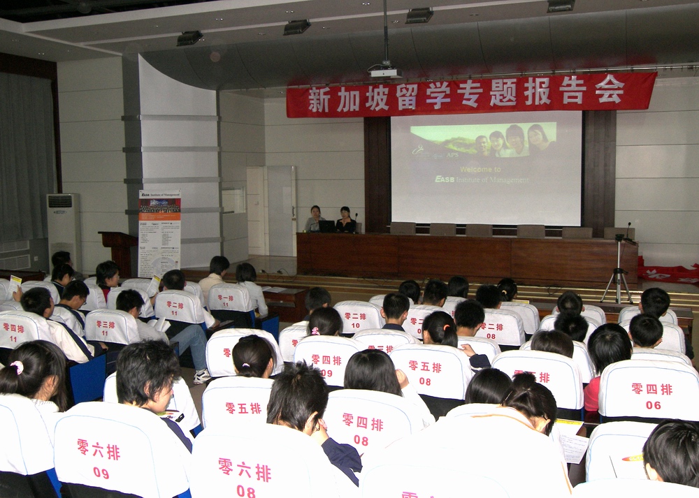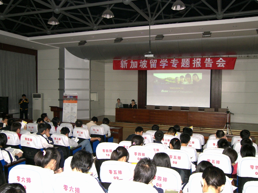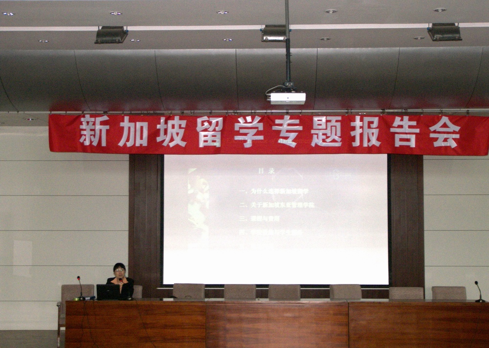 为拓宽我校高中毕业生的升学渠道,新加坡东亚管理学院于5月11日下午在我校学术报告厅举办了新加坡留学专题报告会,有300多名学生及家长参加了会议。