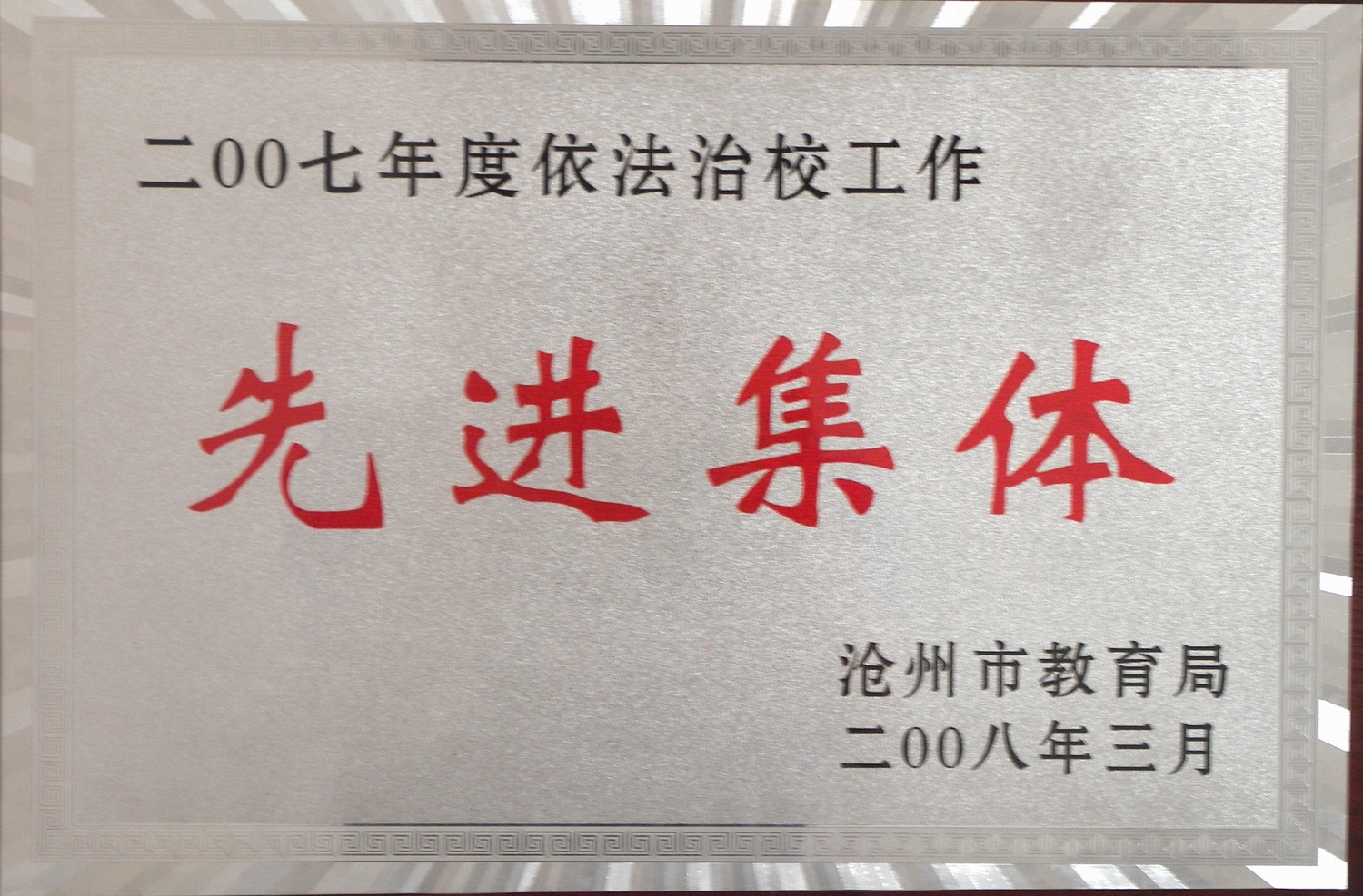 近日,我校被评为沧州市2007年度依法治校先进集体。